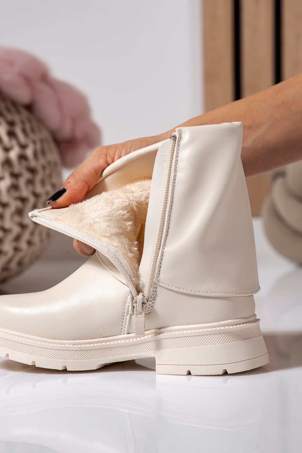 Lányka csizma szőrmével bézs öko bőrből készült Sara #22554