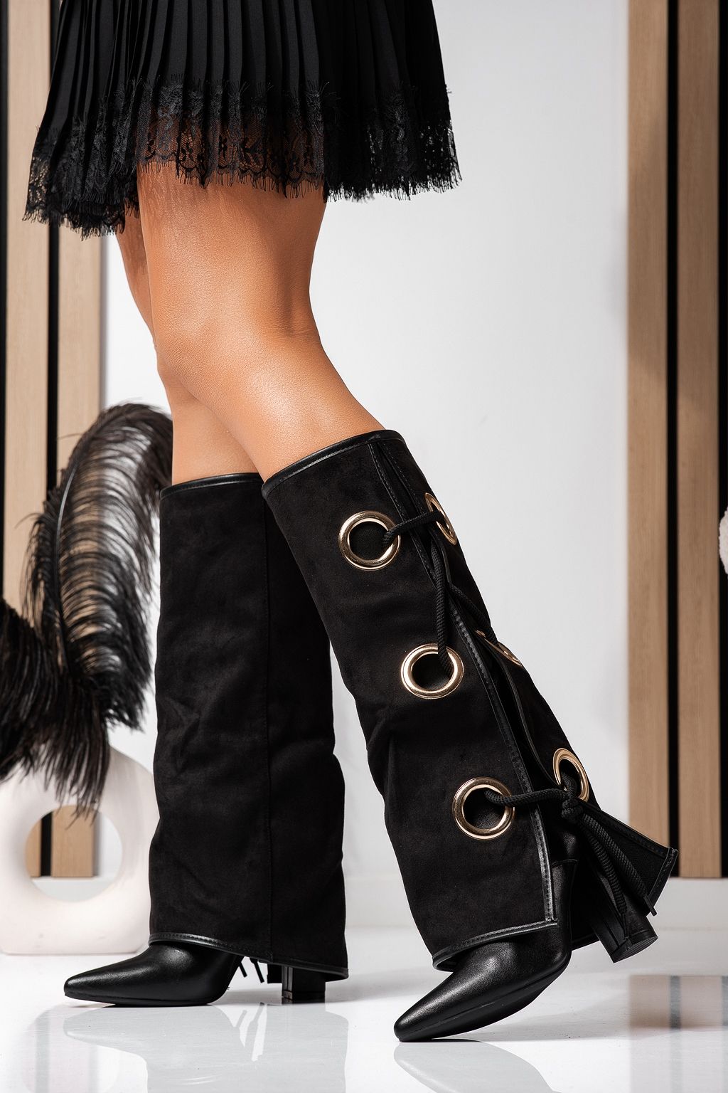 Női rövid csizma bélelt fekete öko bőrből készült visszaküldött Alondra #22607