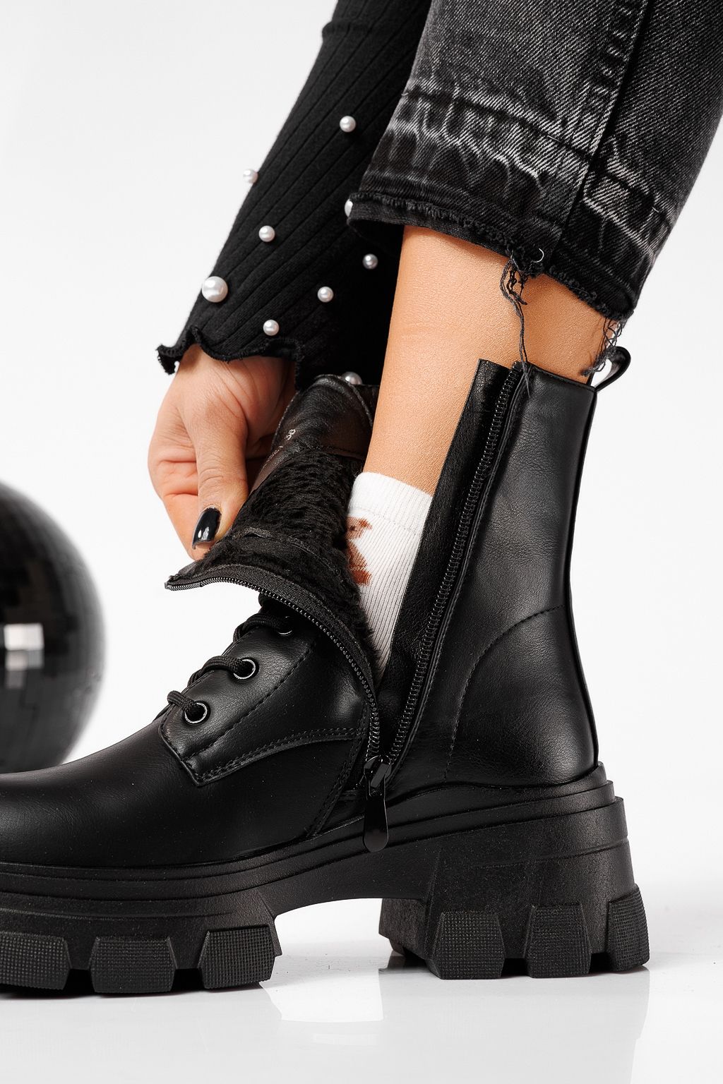 Főoldal Minden termék Női rövidszárú csizma Téli Csizma Női csizma szőrmével fekete öko bőrből készült Kiara #22664