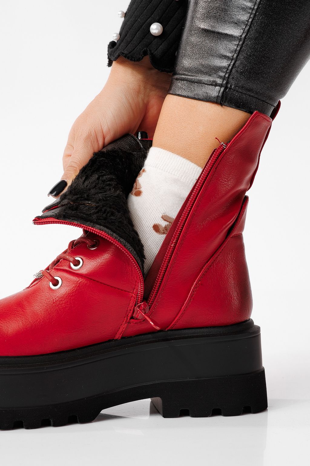 Főoldal Minden termék Női rövidszárú csizma Bundás-Csizma Női csizma szőrmével piros öko bőrből készült Maria #22674