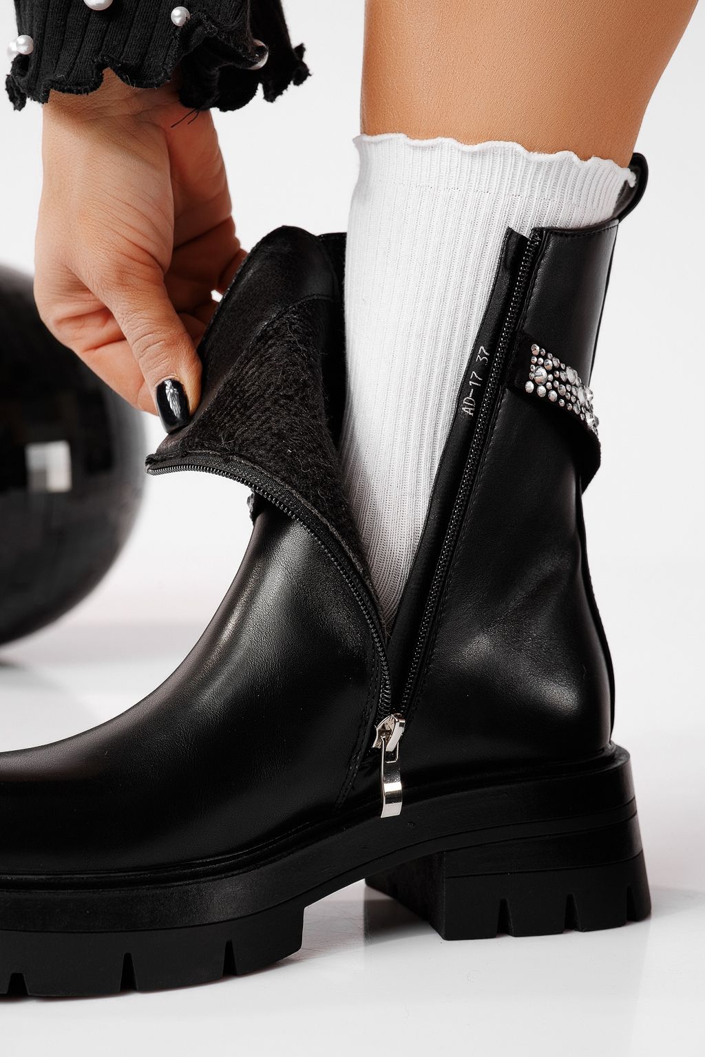 Főoldal Minden termék Női rövidszárú csizma Őszi Csizma Női csizma szőrmével vattás fekete öko bőrből készült Teodora #22710