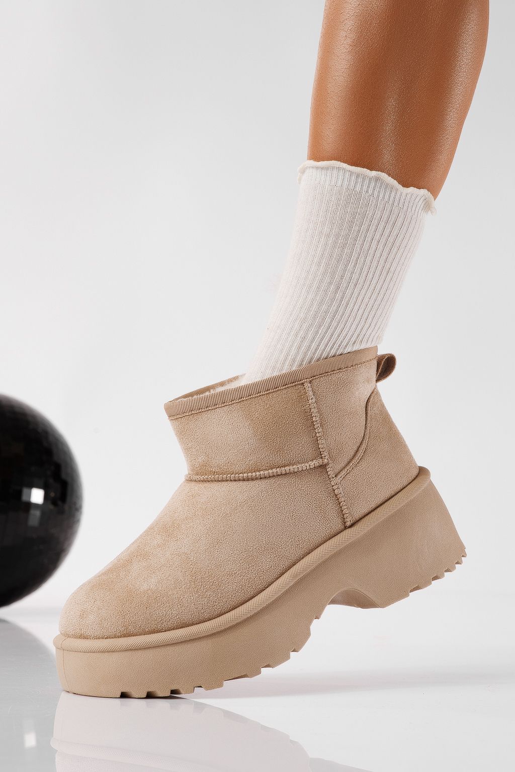 Női rövid csizma Ug szőrmével bézs organikus velúr bőrből készült Aurora #22746