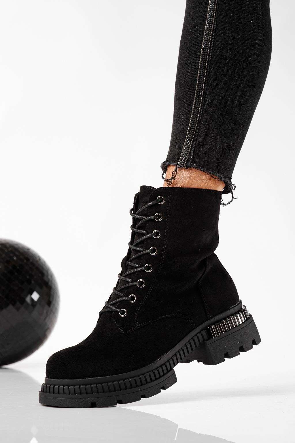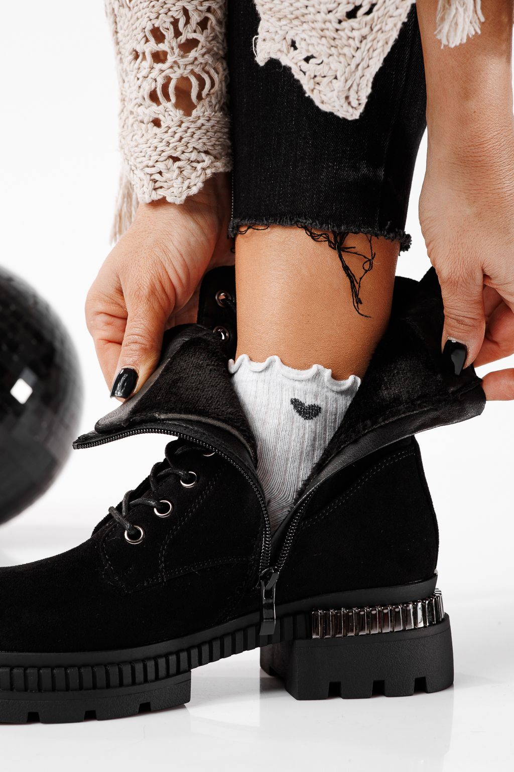 Főoldal Minden termék Női rövidszárú csizma Téli Csizma Női csizma szőrmével fekete organikus velúr bőrből készült Isabella #22774