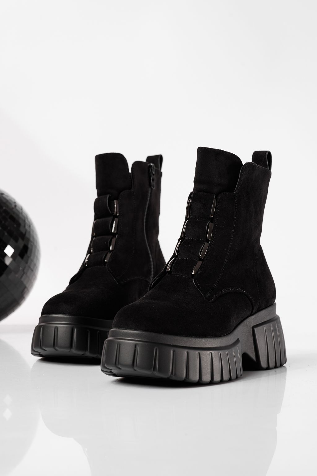 Főoldal Minden termék Női rövidszárú csizma Téli Csizma Női csizma szőrmével fekete organikus velúr bőrből készült Mia #22788