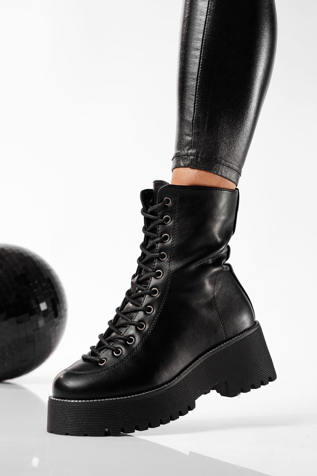Főoldal Minden termék Női rövidszárú csizma Női csizma szőrmével fekete öko bőrből készült Ellis #22810
