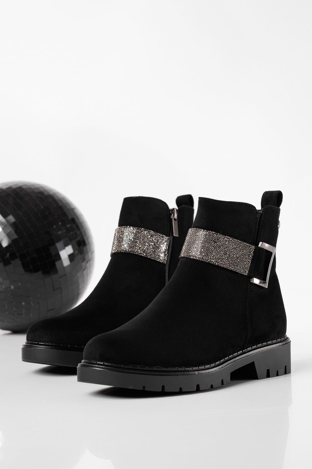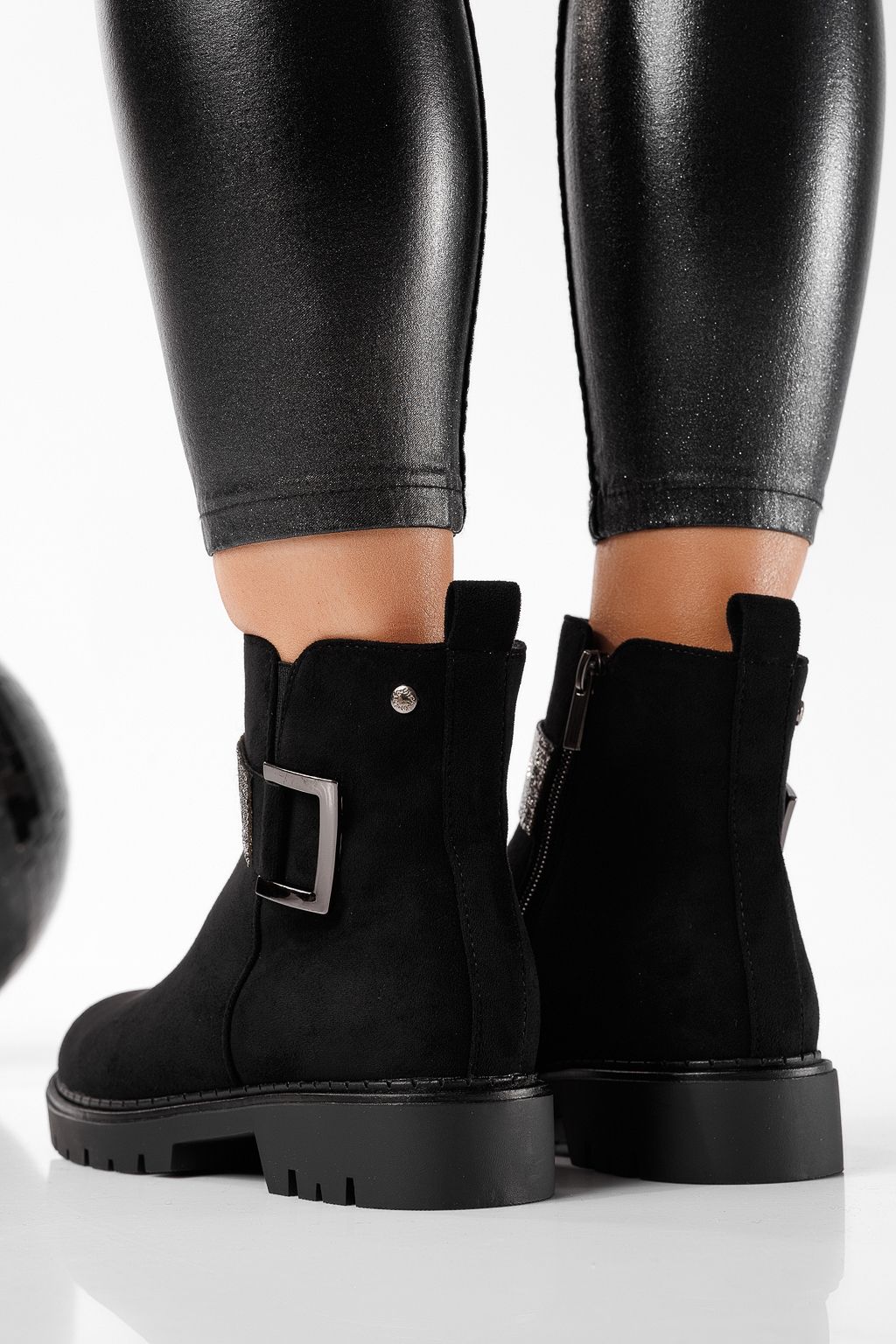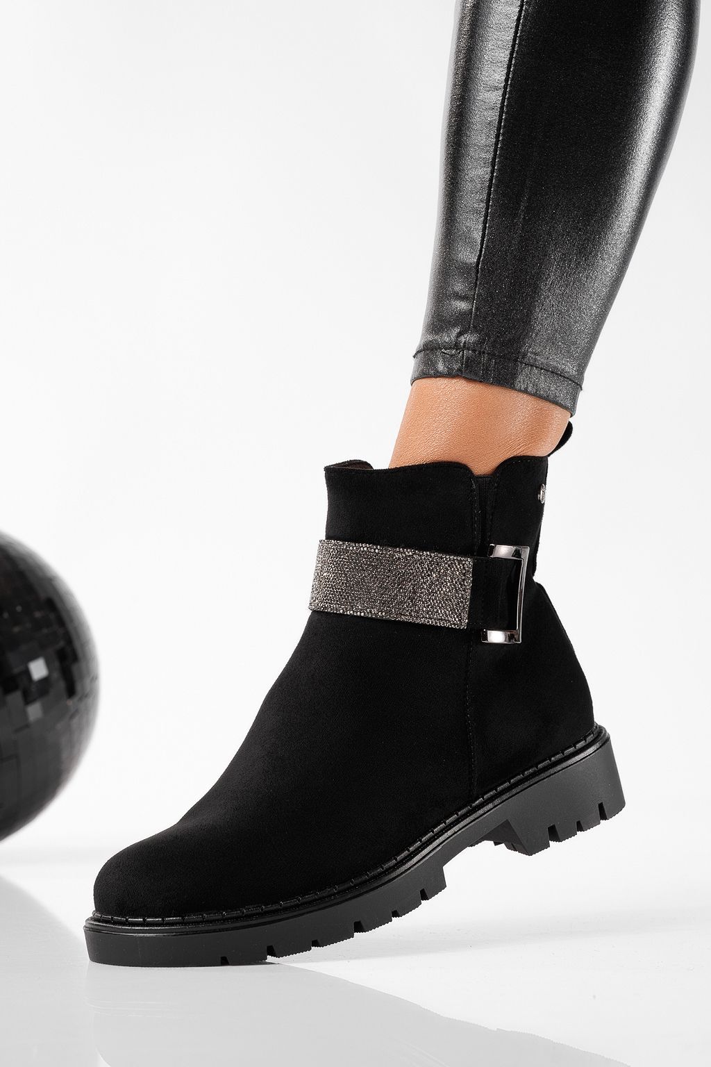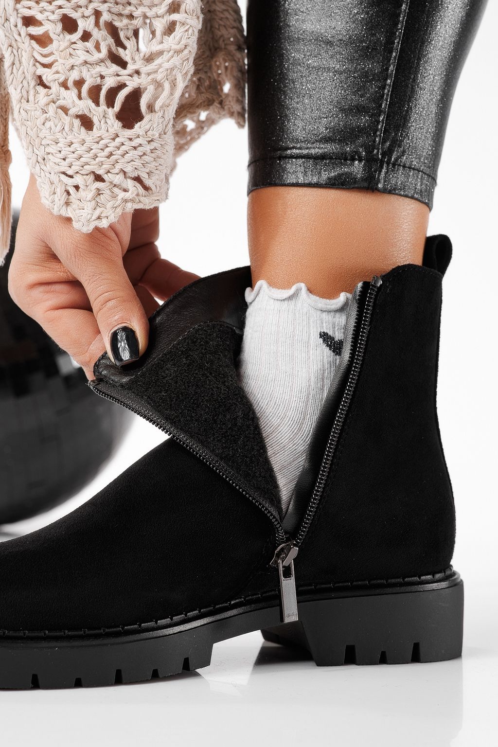 Főoldal Minden termék Női rövidszárú csizma Női csizma szőrmével fekete öko bőrből és velúrból készült Amira #22814