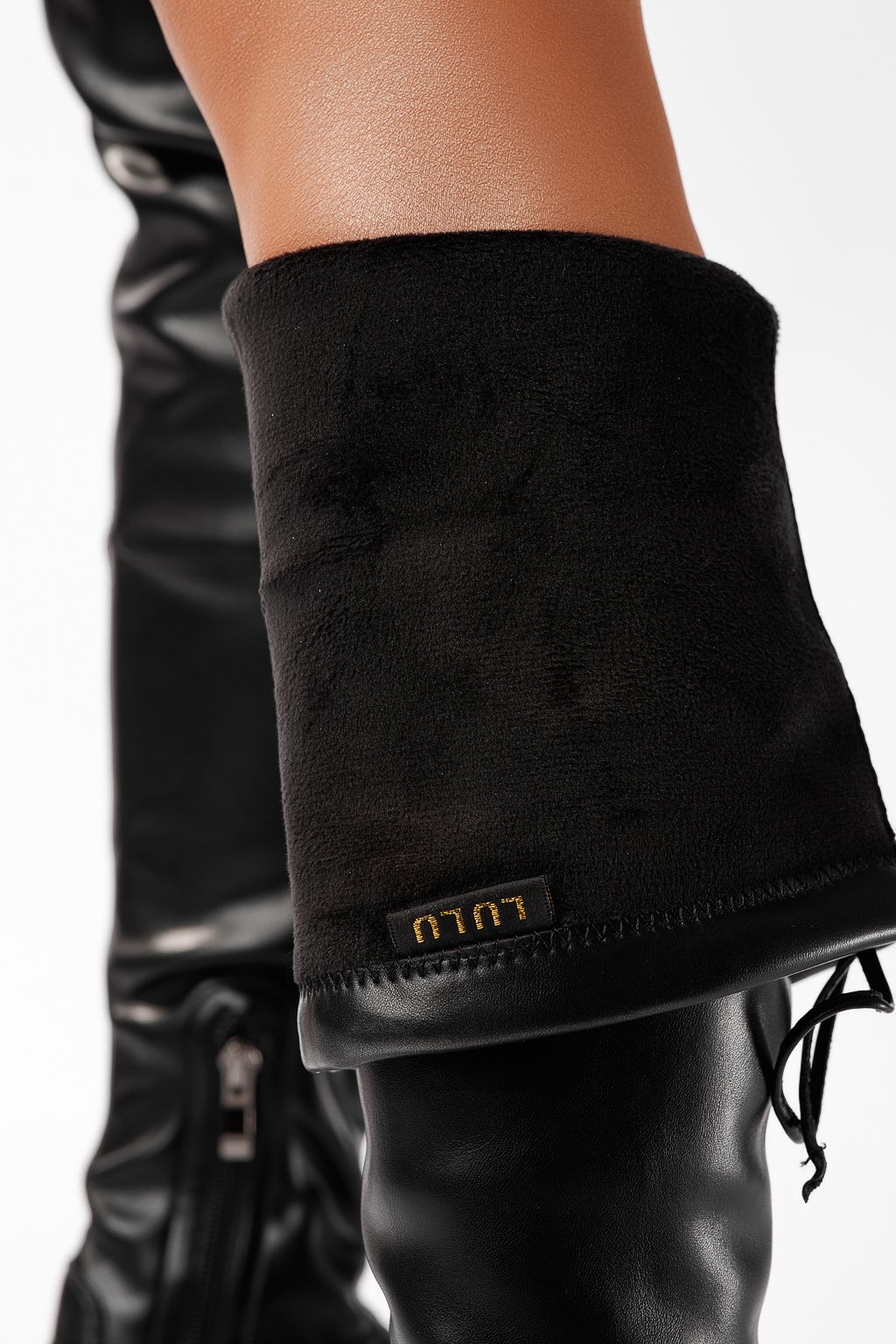 Hosszú női csizma szőrmével fekete öko bőrből készült Brook #22831