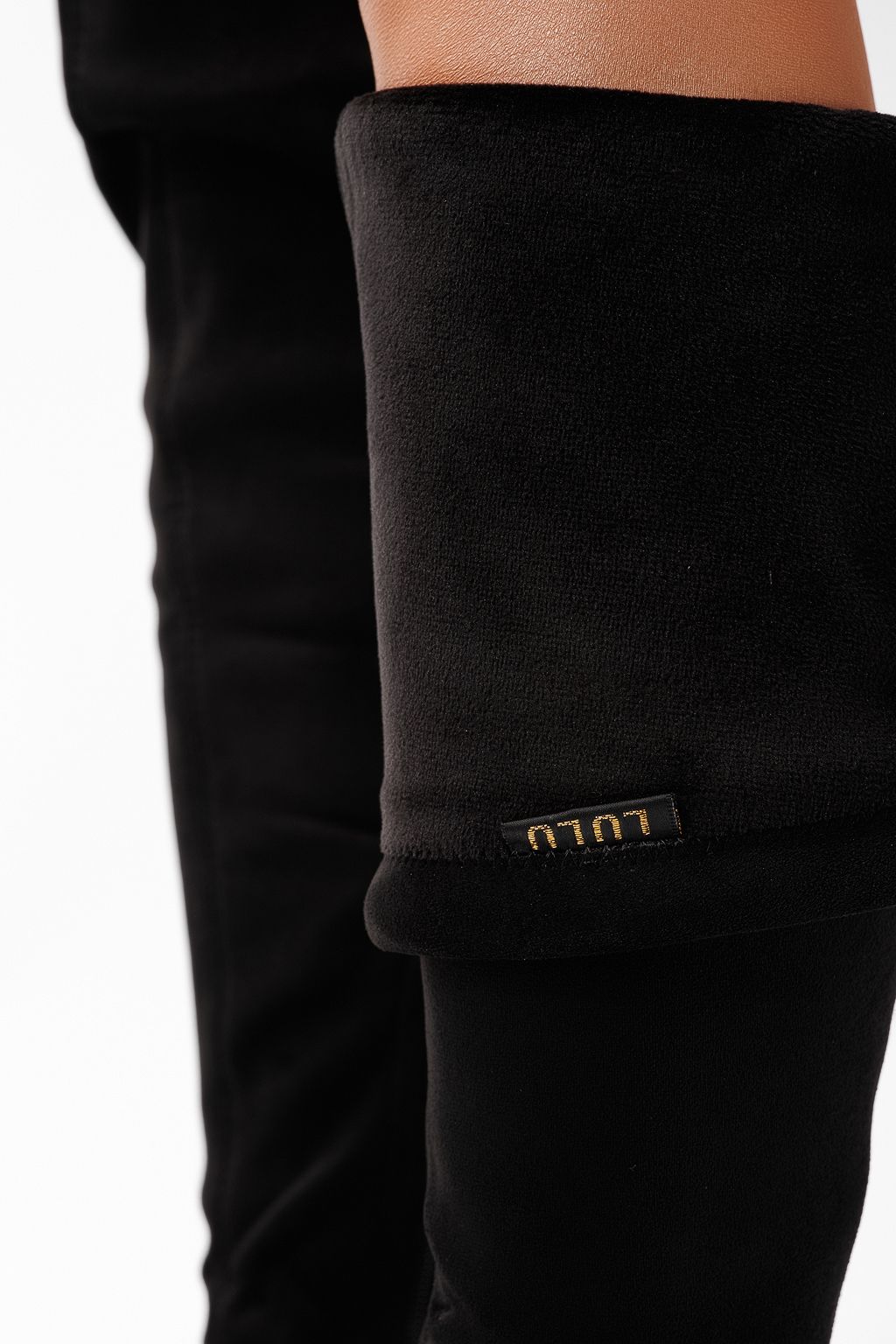 Hosszú női csizma szőrmével fekete öko bőrből és velúrból készült Chabela #22838