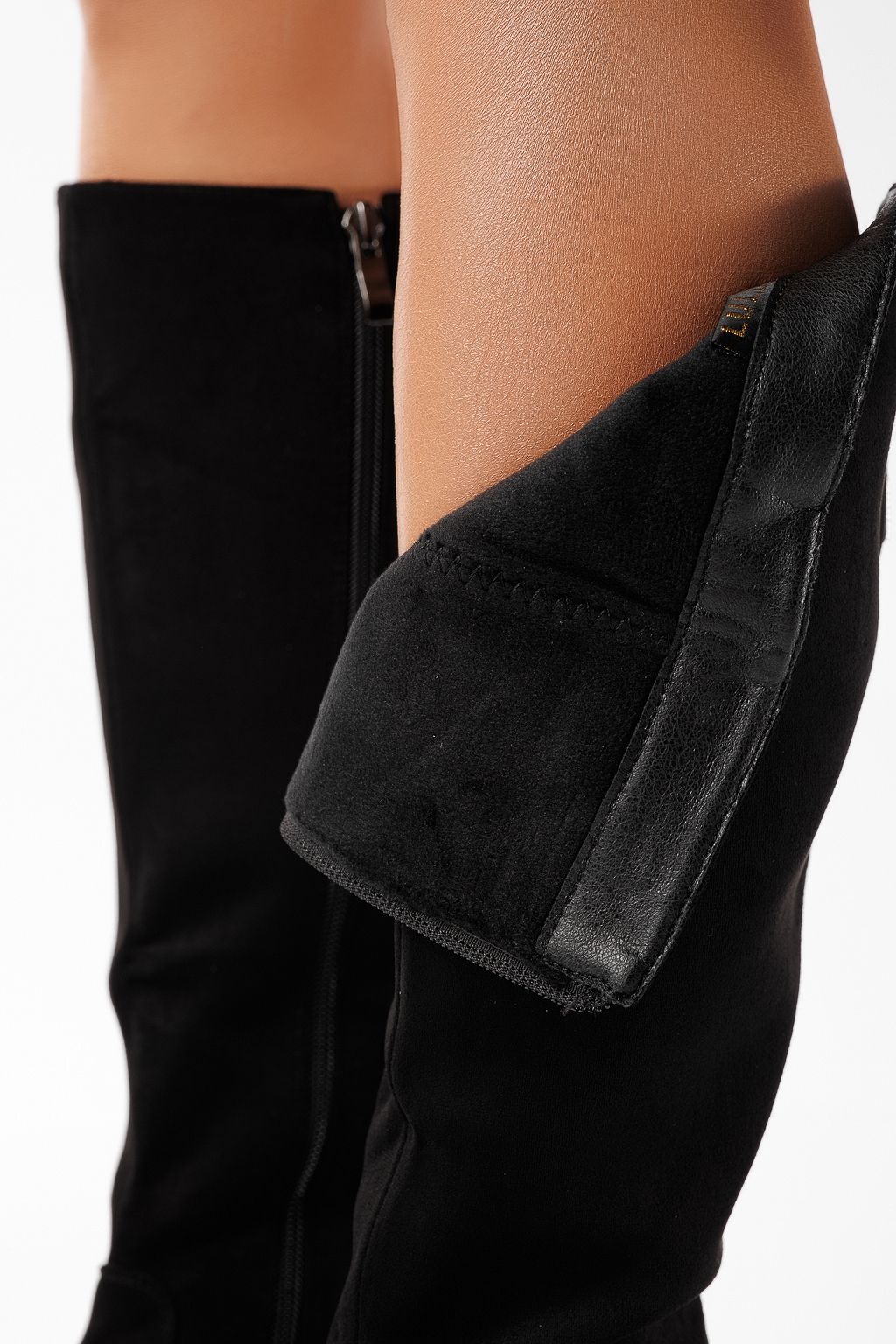 Rövid női csizma szőrmével fekete öko bőrből és velúrból készült Gilda #22860