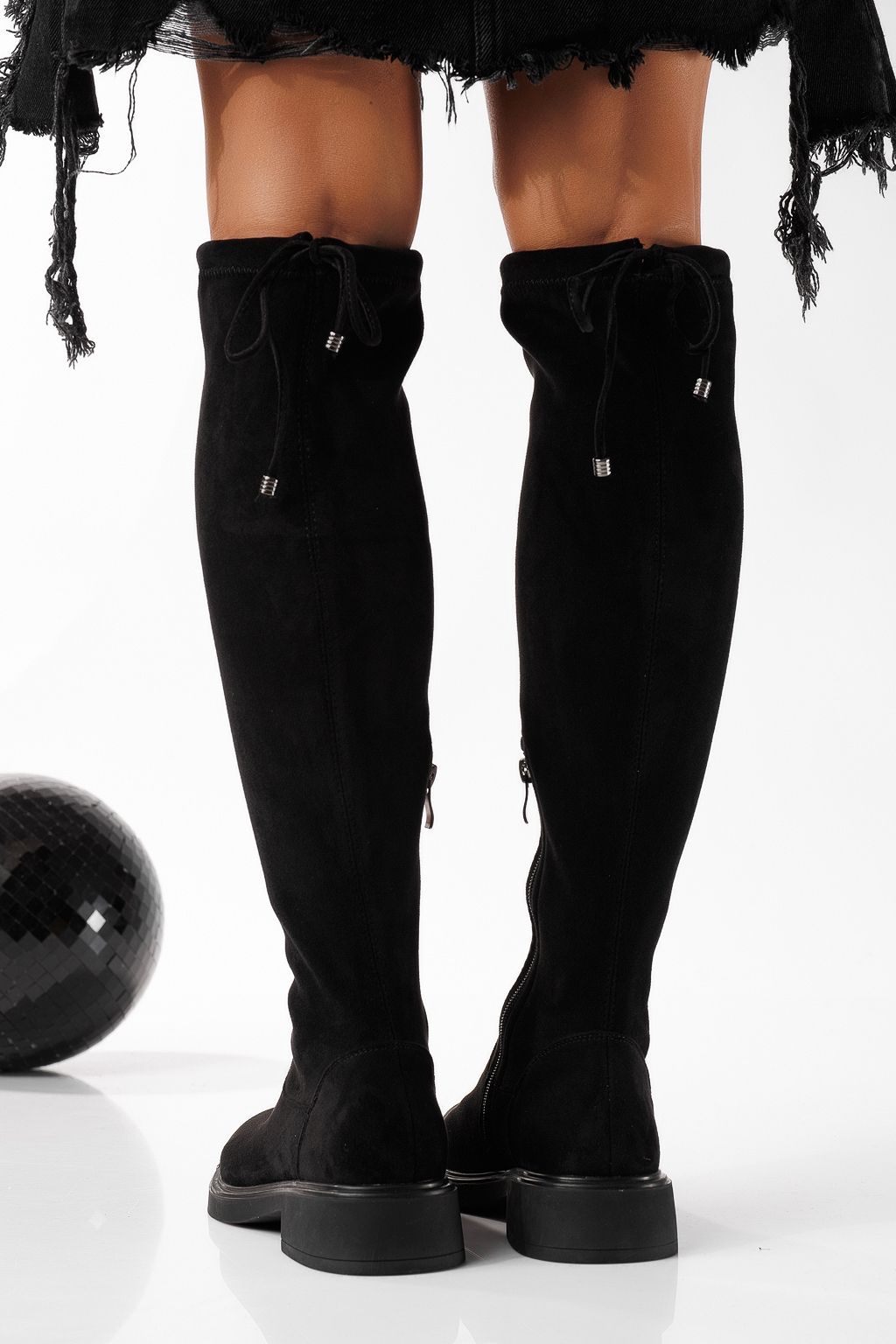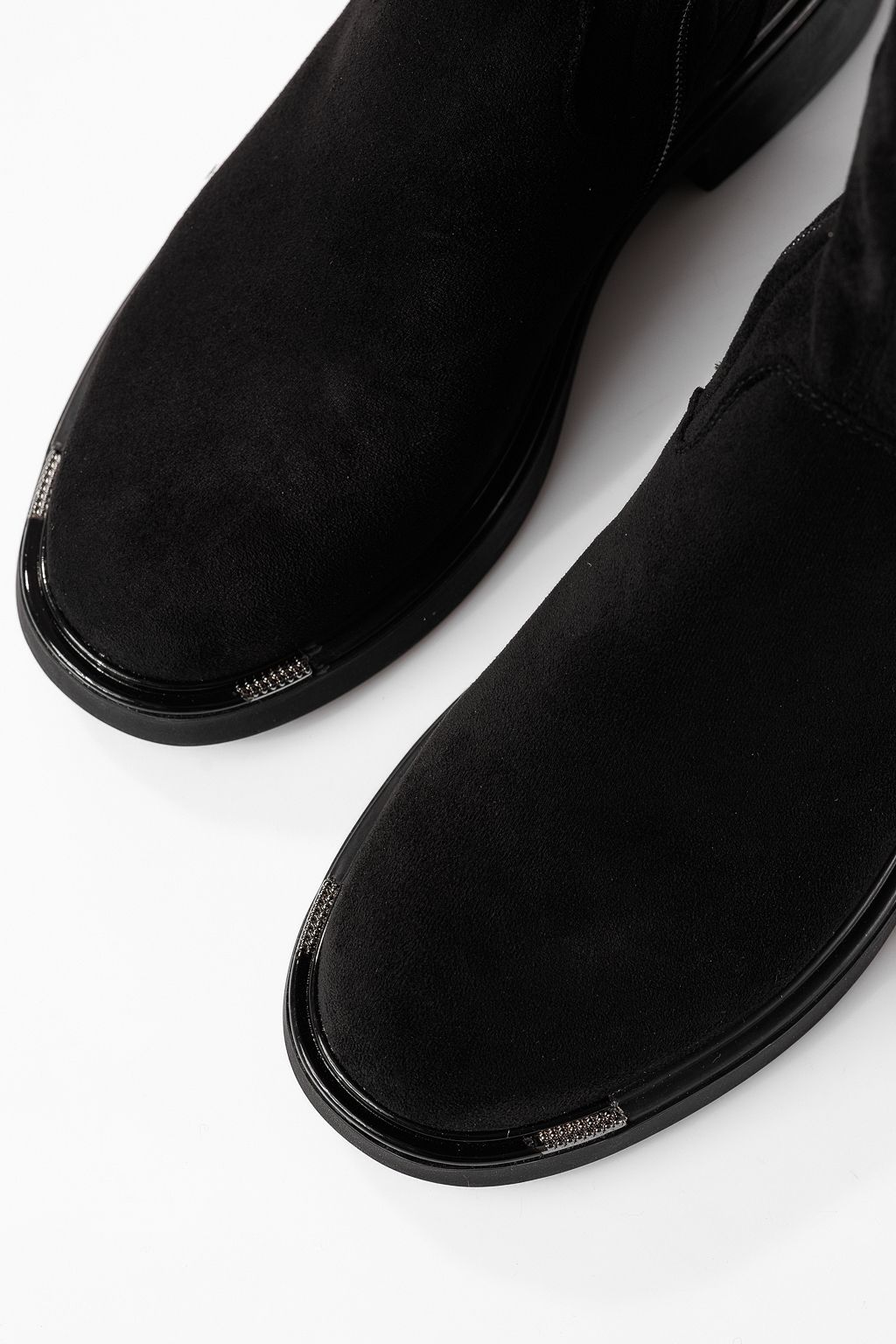 Rövid női csizma szőrmével fekete öko bőrből és velúrból készült Hiraani #22863