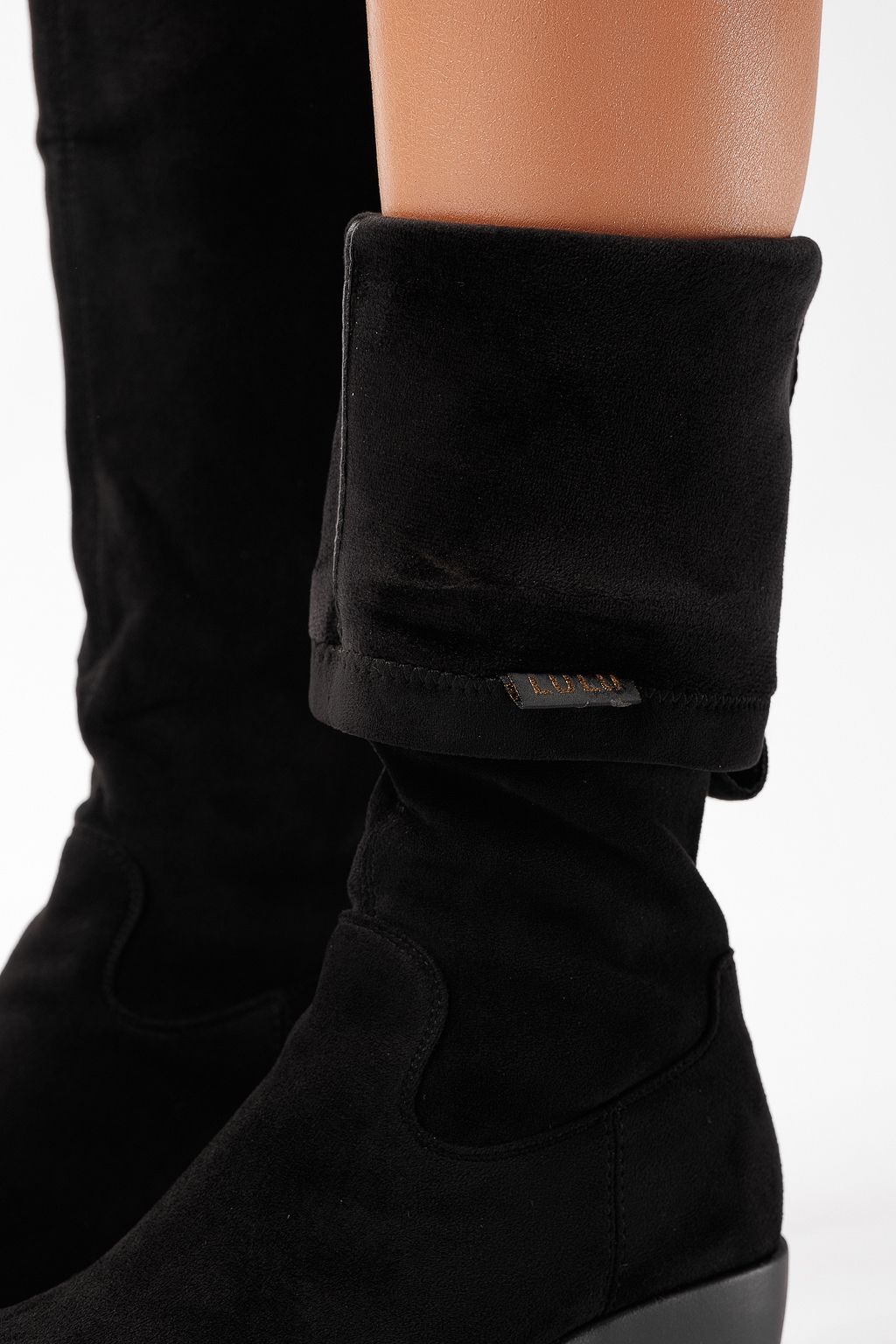 Rövid női csizma szőrmével fekete öko bőrből és velúrból készült Jennifer #22867
