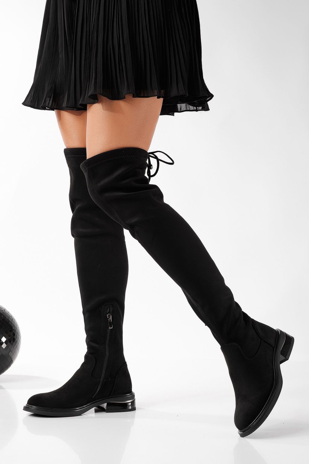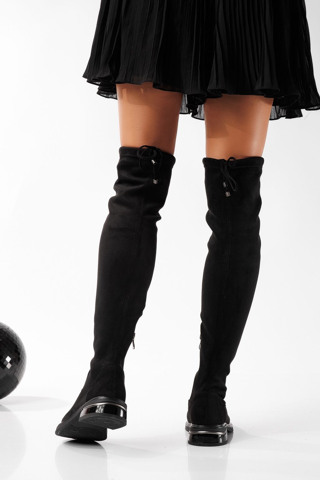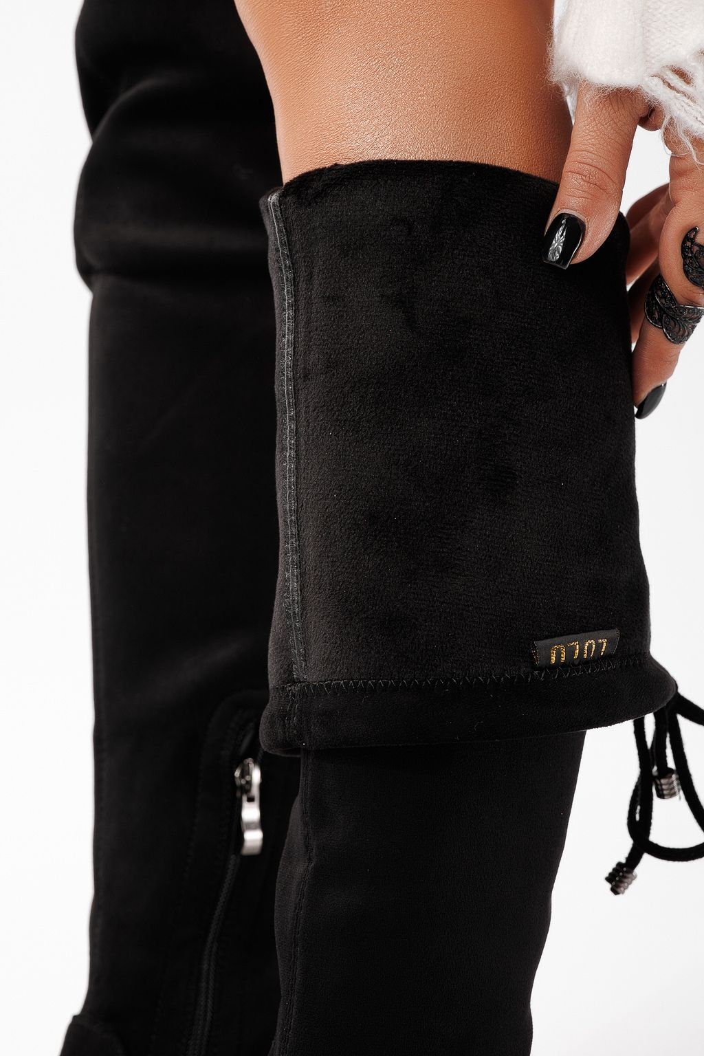 Hosszú női csizma szőrmével fekete öko bőrből és velúrból készült Karma #22870