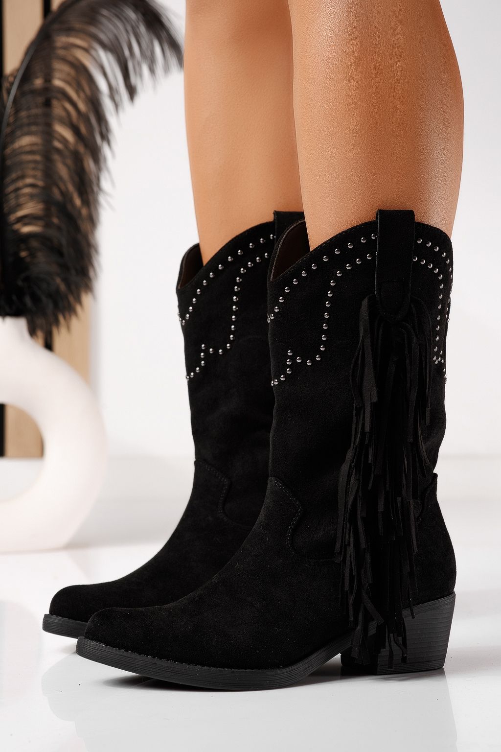 Főoldal Minden termék Női bokacipő Elegáns Bokacsizma Női csizma béléssel fekete öko velúrból készült Leila #22931