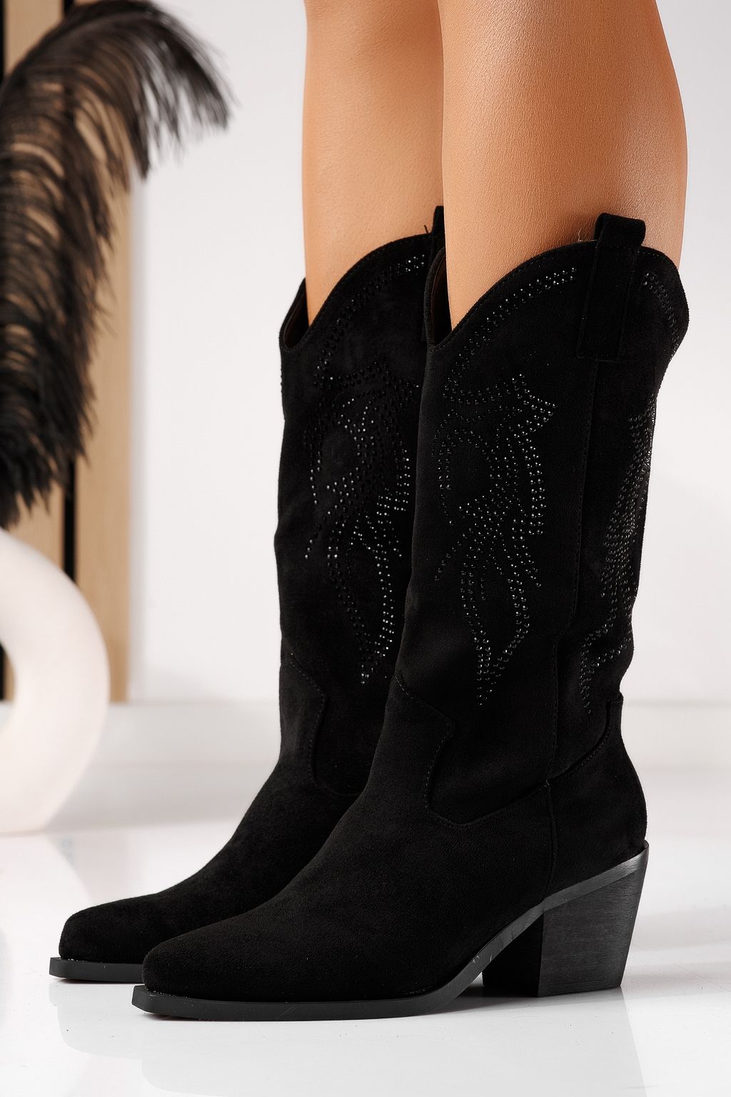 Női csizma béléssel fekete velúr bőrből készült Alina #22943