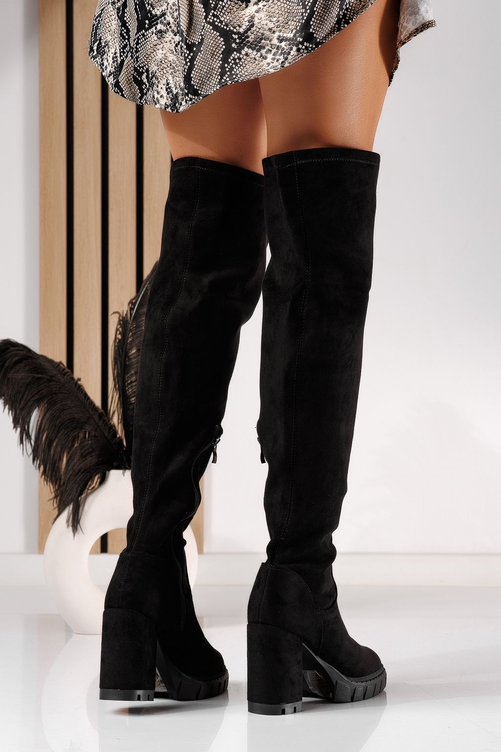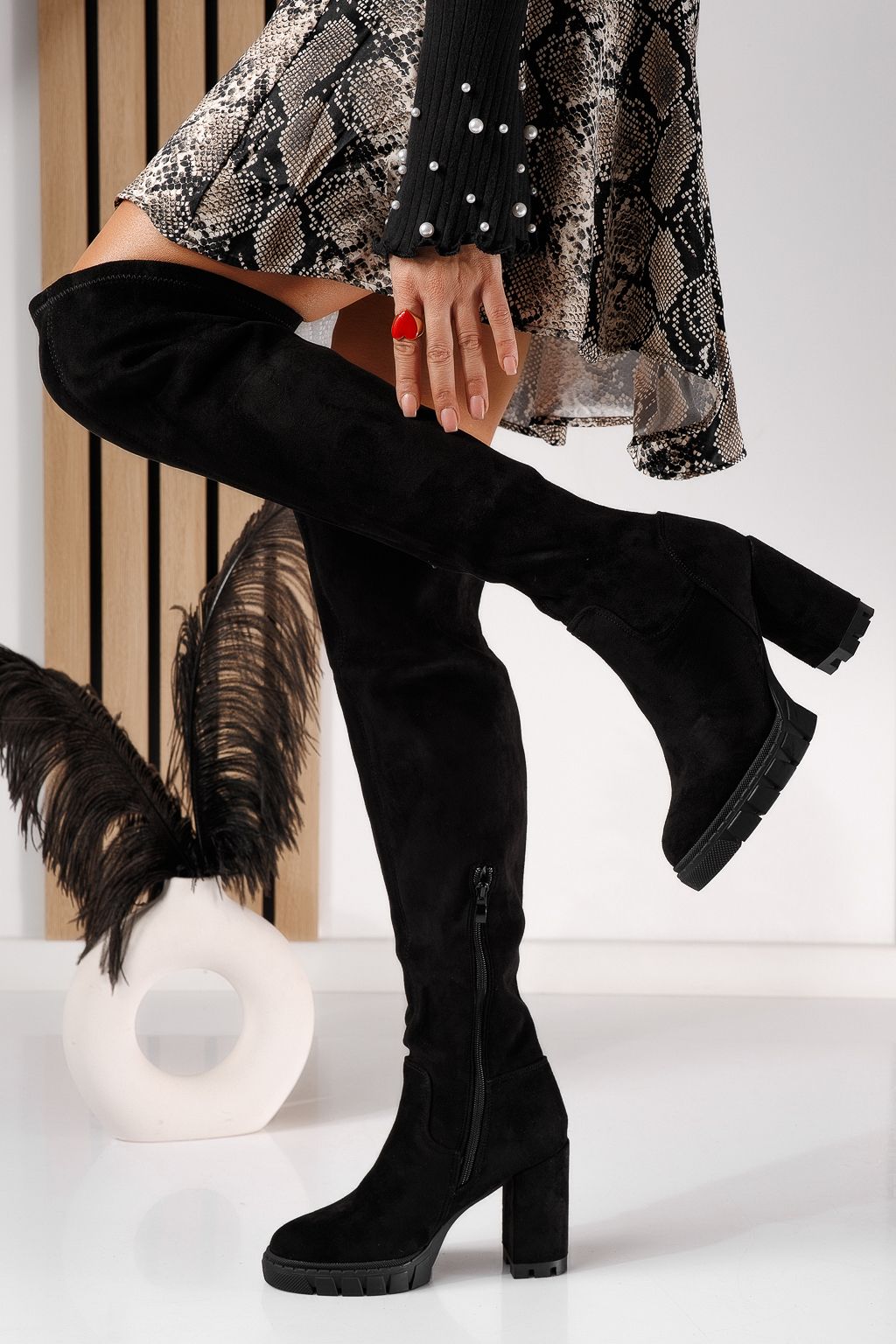 Női hosszú bélelt csizma fekete velúr bőrből készült Irina #22945