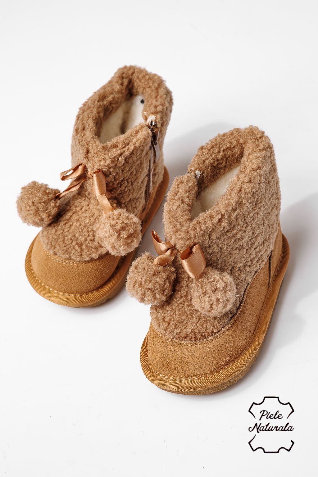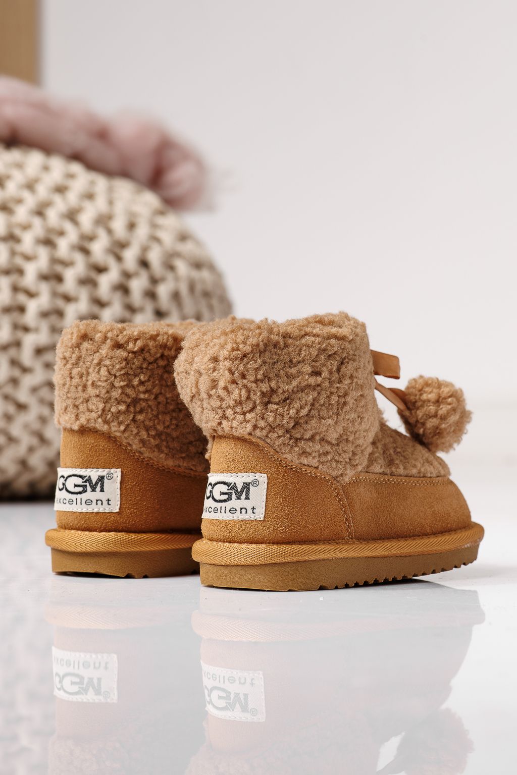 Lányka szőrme csizma barna természetes velúr bőrből készült Ellis #22963