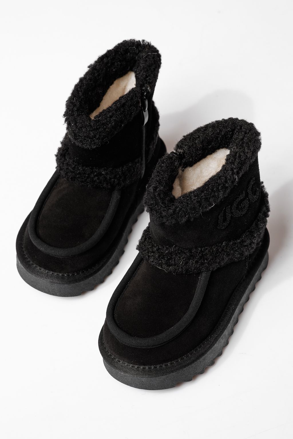 Főoldal Minden termék Gyerekcipők Gyerekcsizma Lányka szőrme csizma fekete természetes velúr bőrből készült Talia #22975