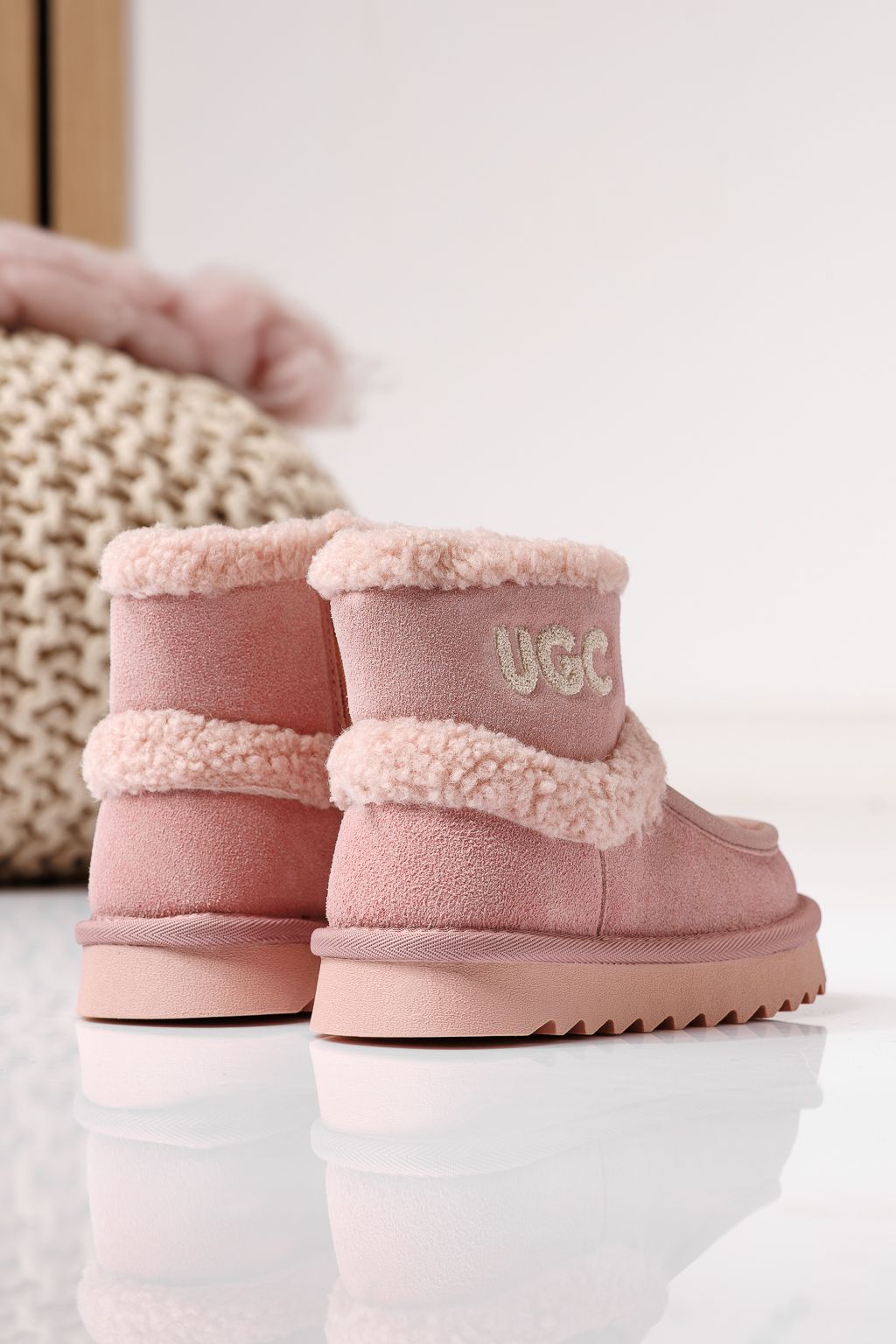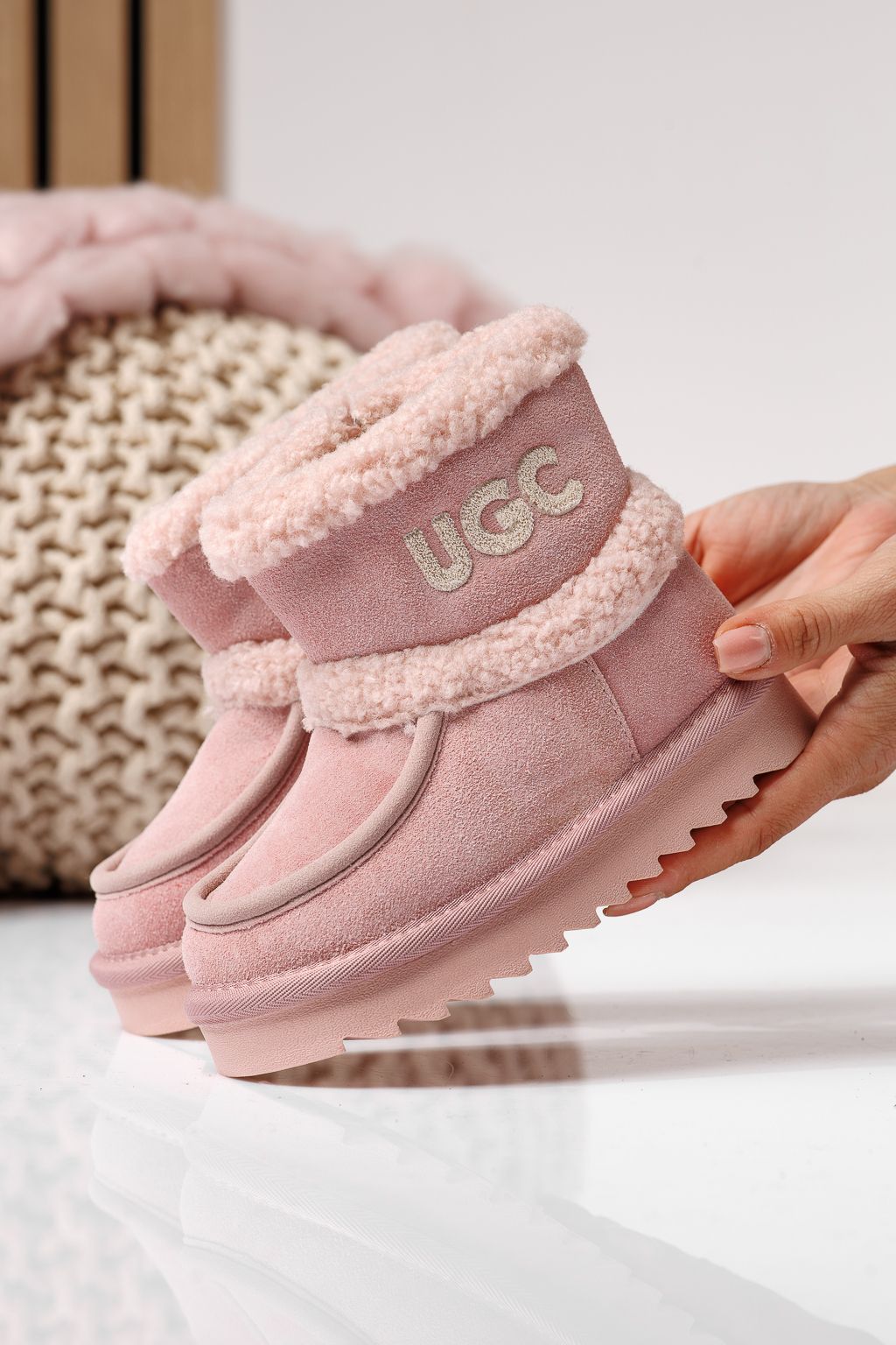 Lányka szőrme csizma rózsaszín természetes velúr bőrből készült Talia #22976