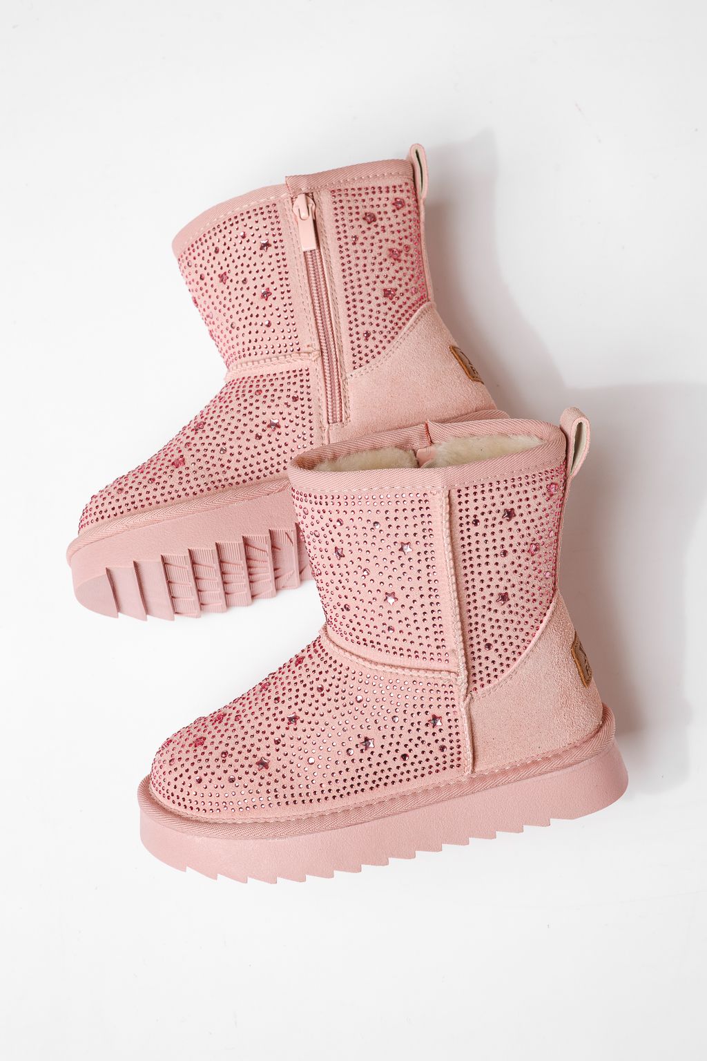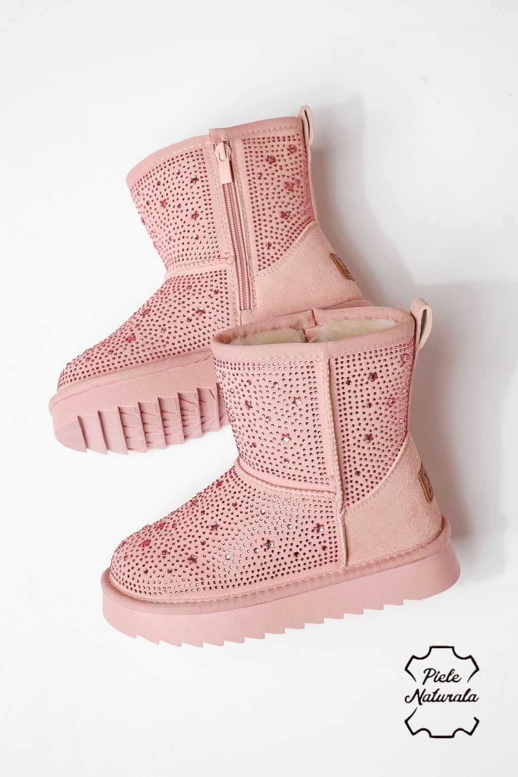 Lányka szőrme csizma rózsaszín természetes velúr bőrből készült Marisa #23002