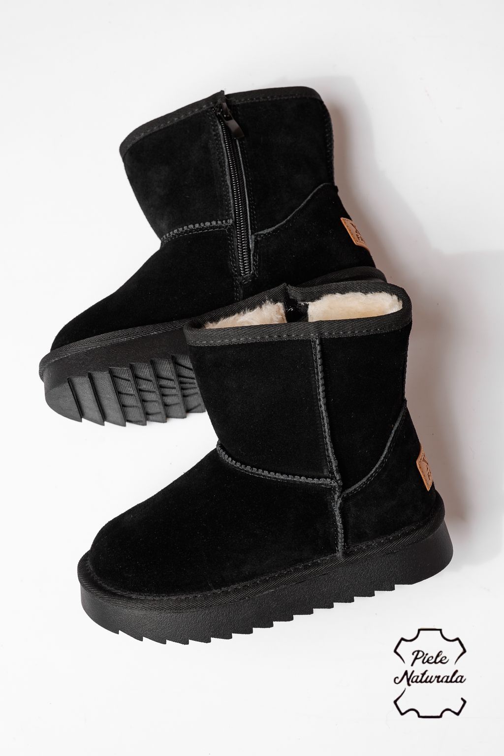 Lányka szőrme csizma fekete természetes velúr bőrből készült Flori #23015