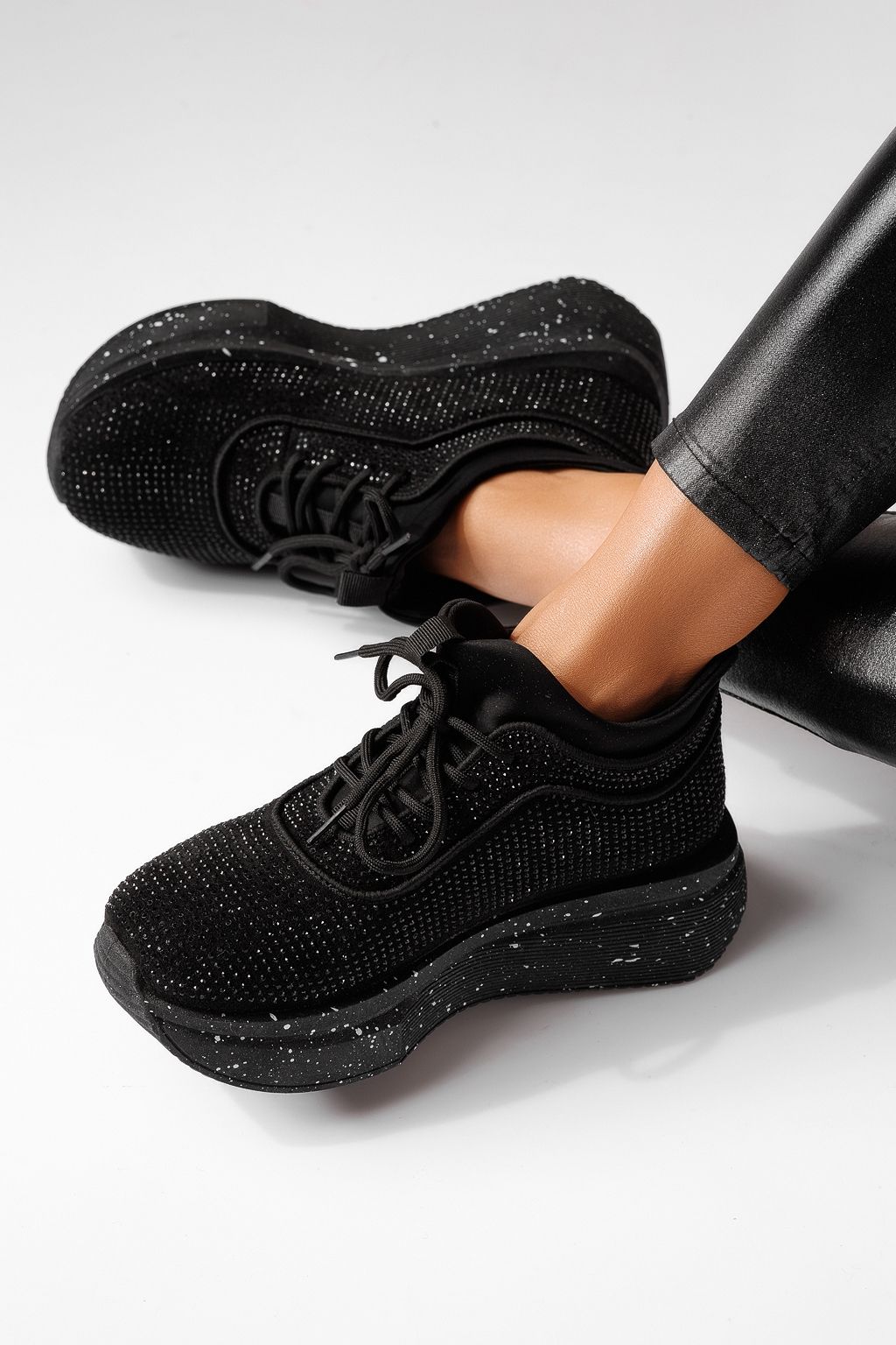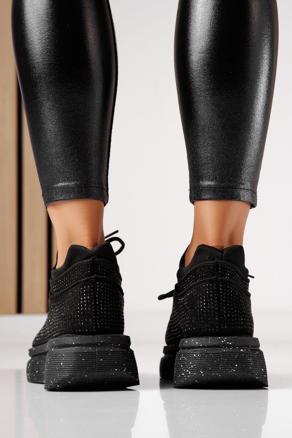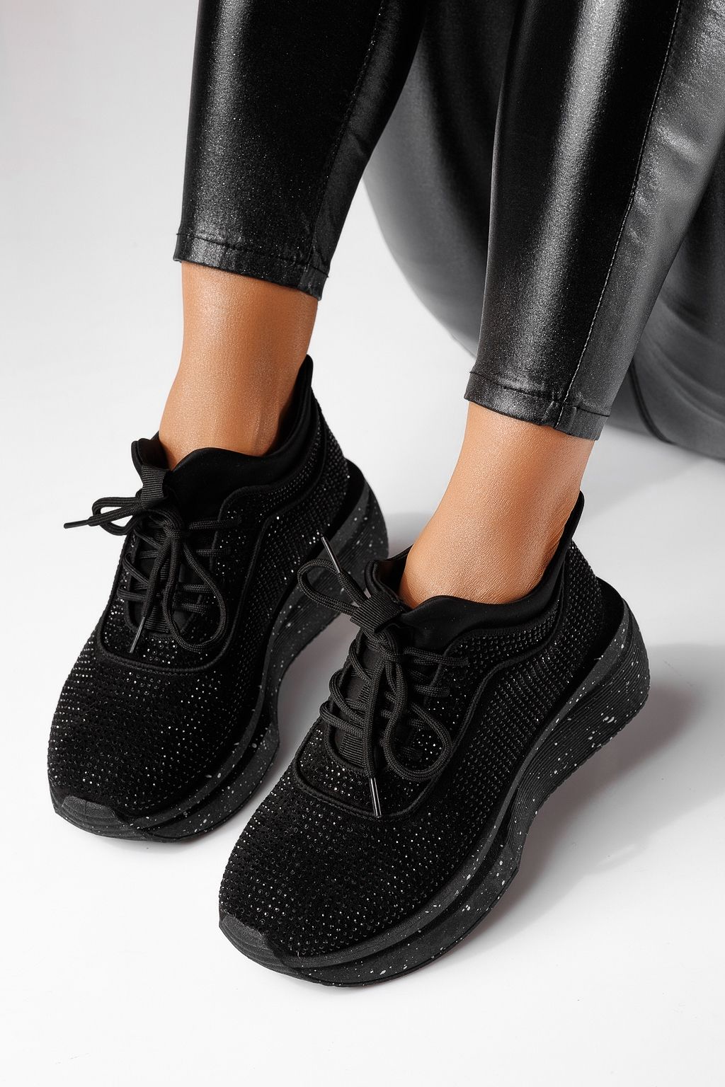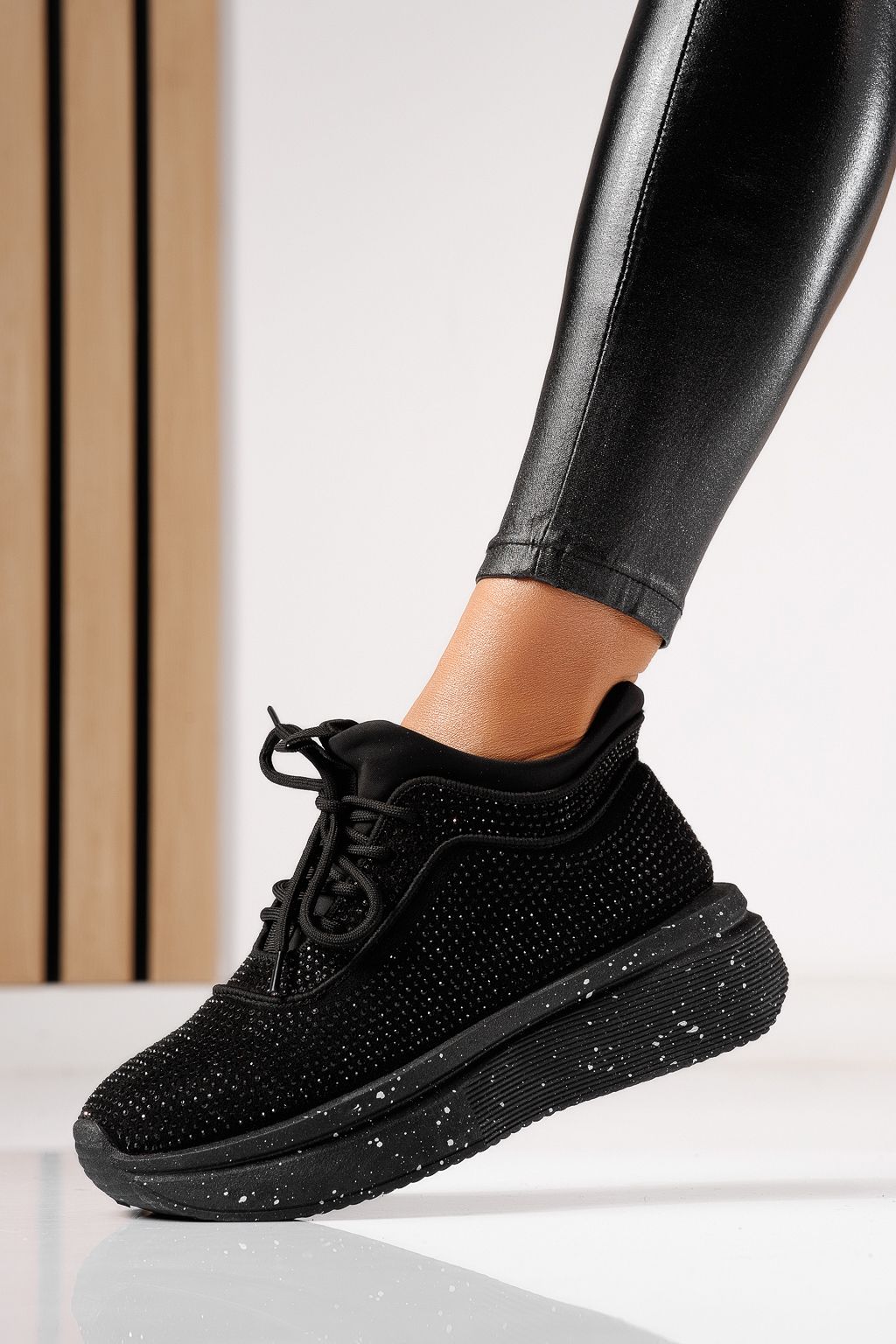 Női bélelt tornacipők fekete öko bőrből készült Eileen #23037
