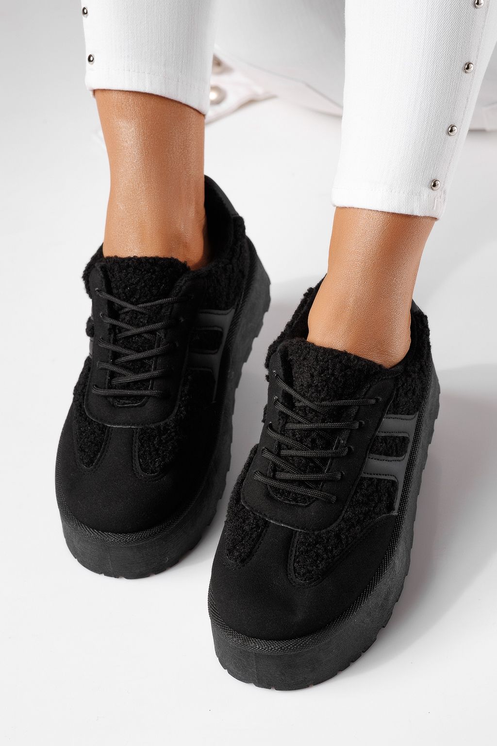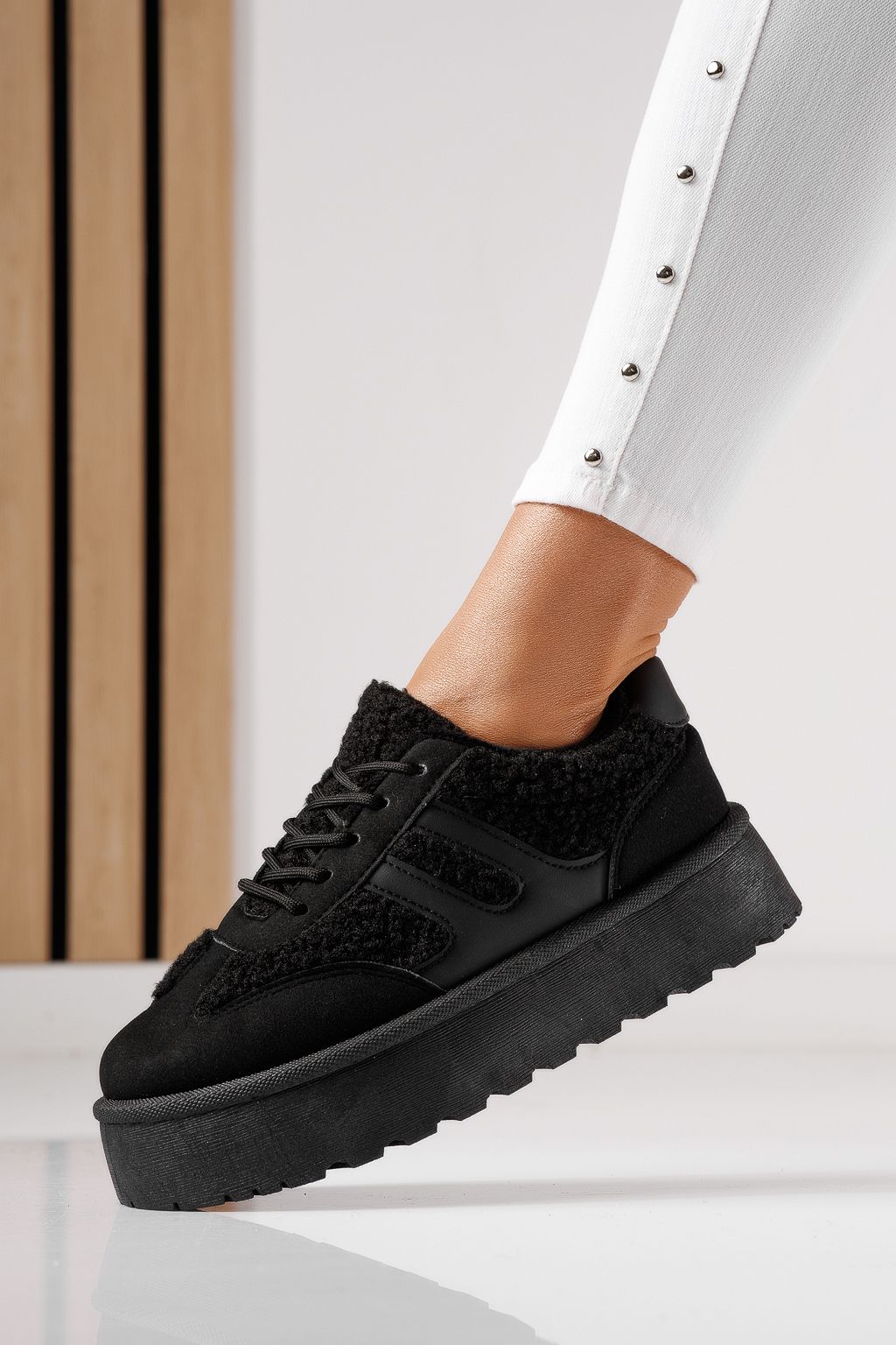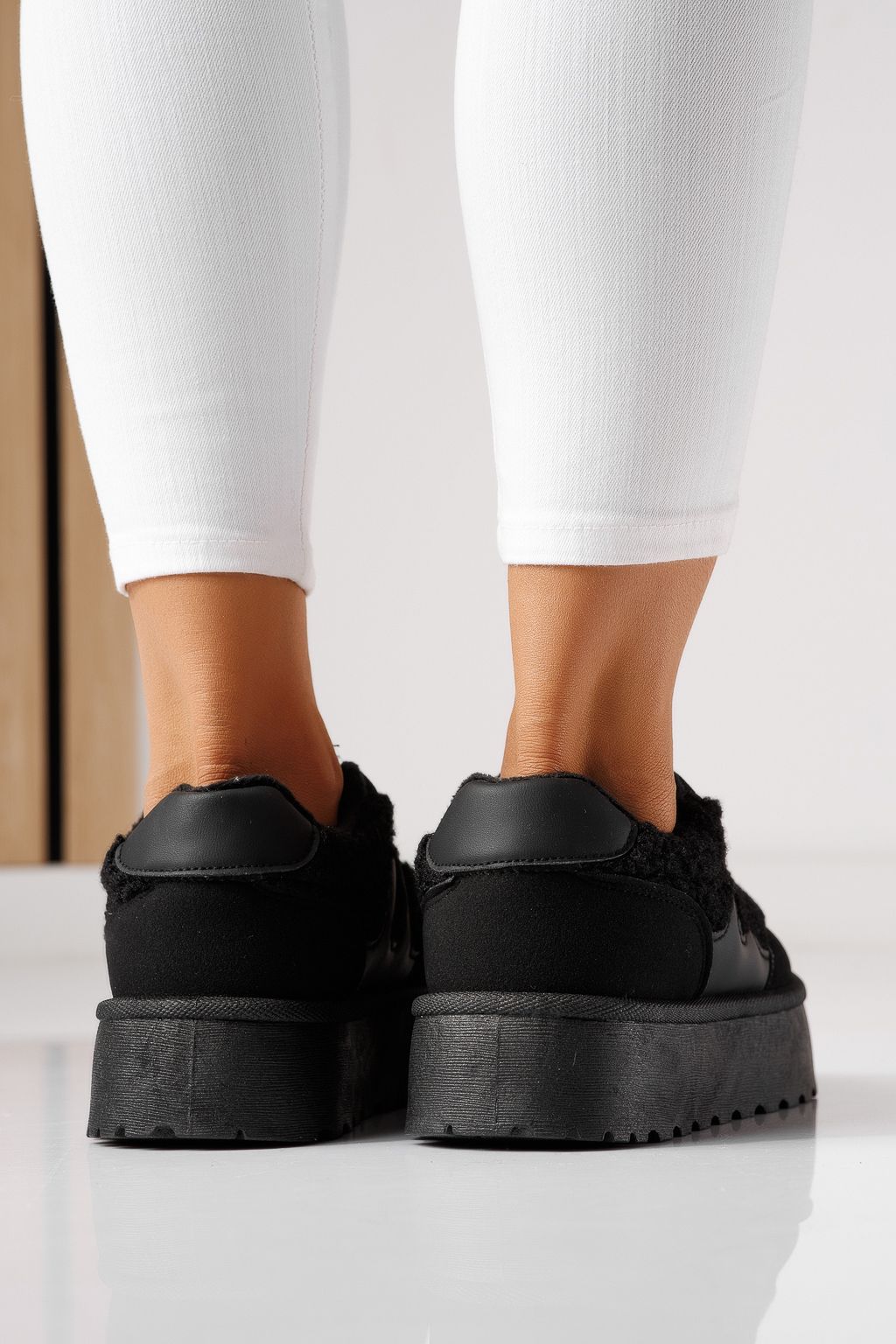 Női bélelt tornacipők fekete öko bőrből készült Lale #23041