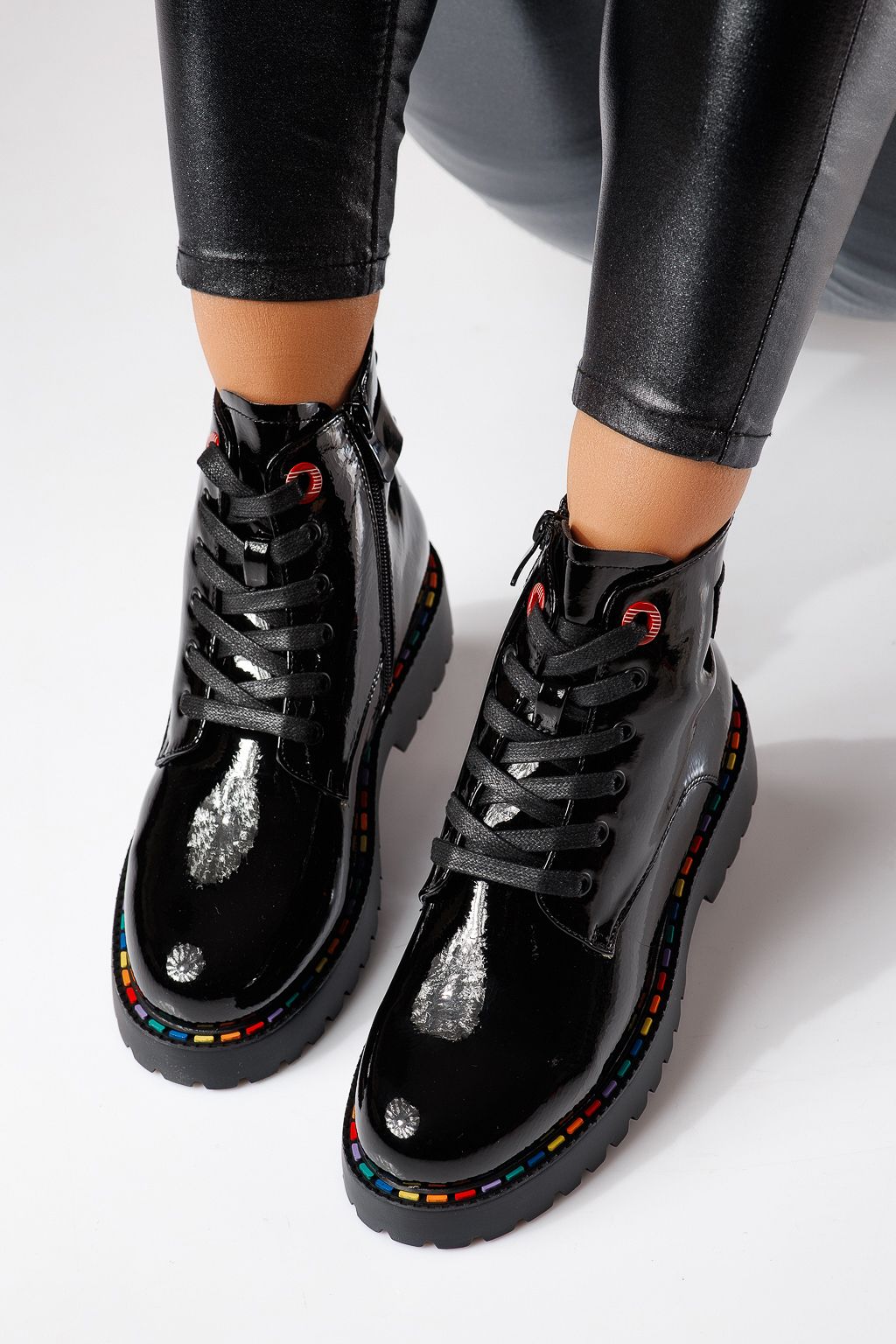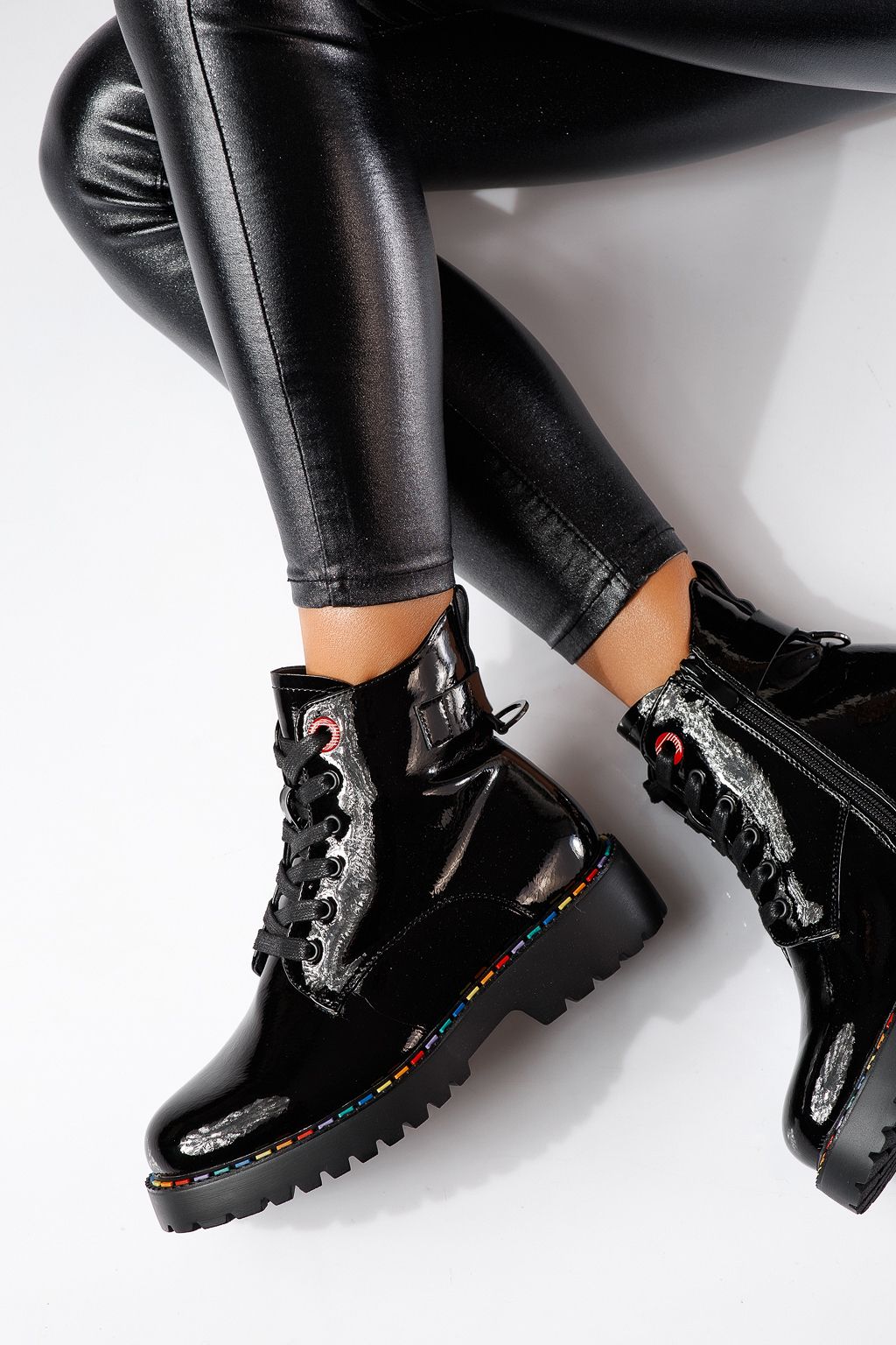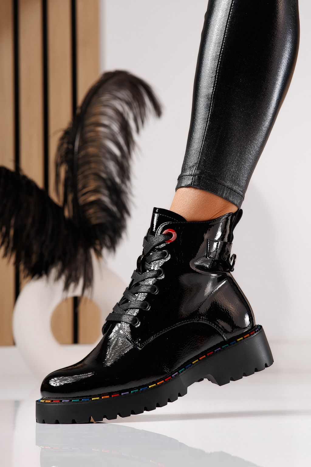 Főoldal Minden termék Női rövidszárú csizma Téli Csizma Női csizma szőrmével fekete lakkozott ökológiai bőrből készült Sevda #23049