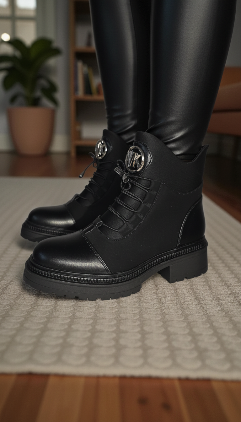 Főoldal Minden termék Női rövidszárú csizma Női csizma szőrmével fekete öko bőrből készült Nami #23055