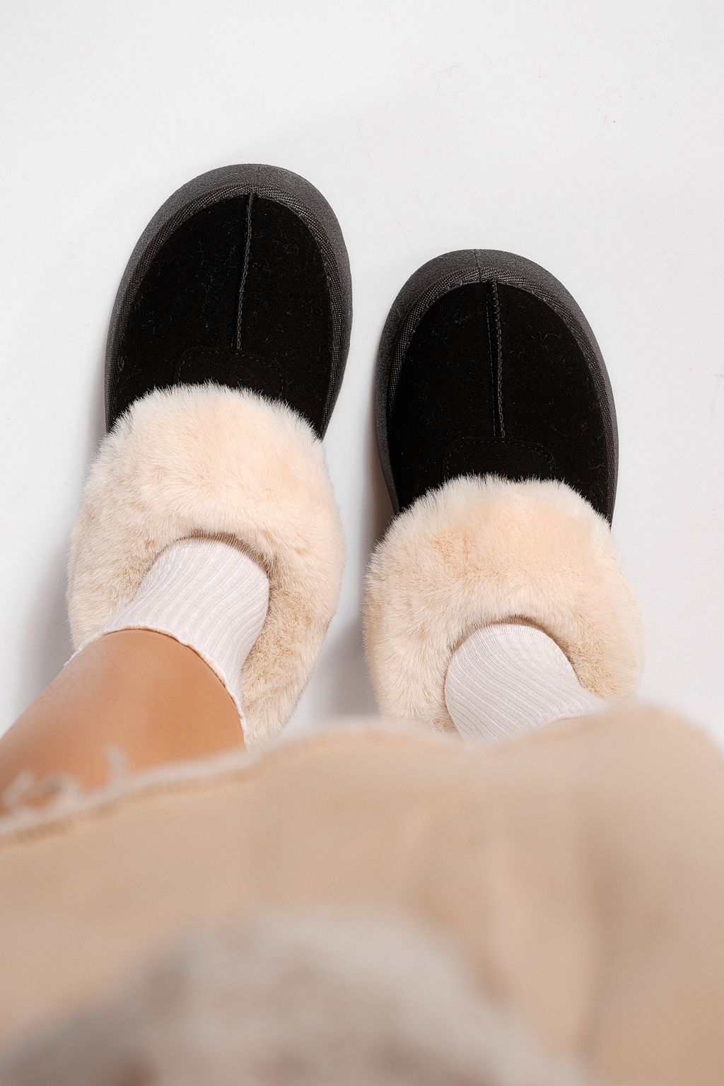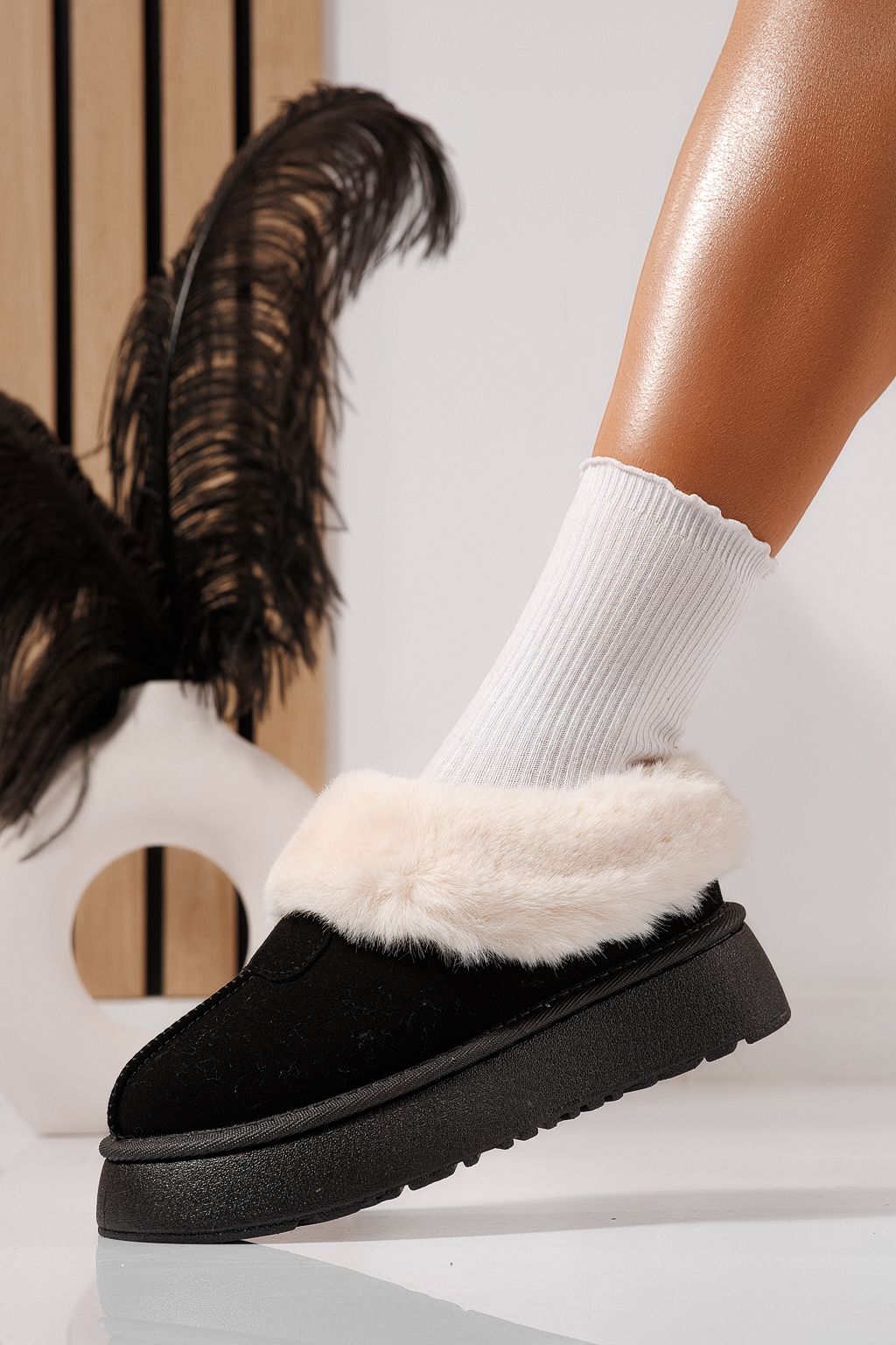 Női szőrmével bélelt csizma Ug fekete öko bőrből készült Antonia #23061