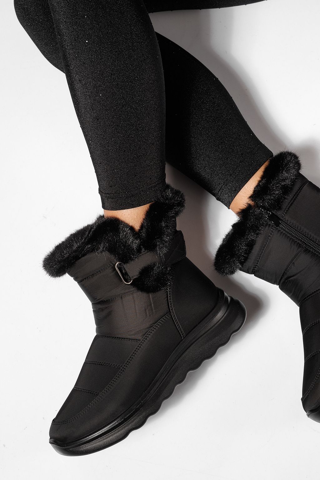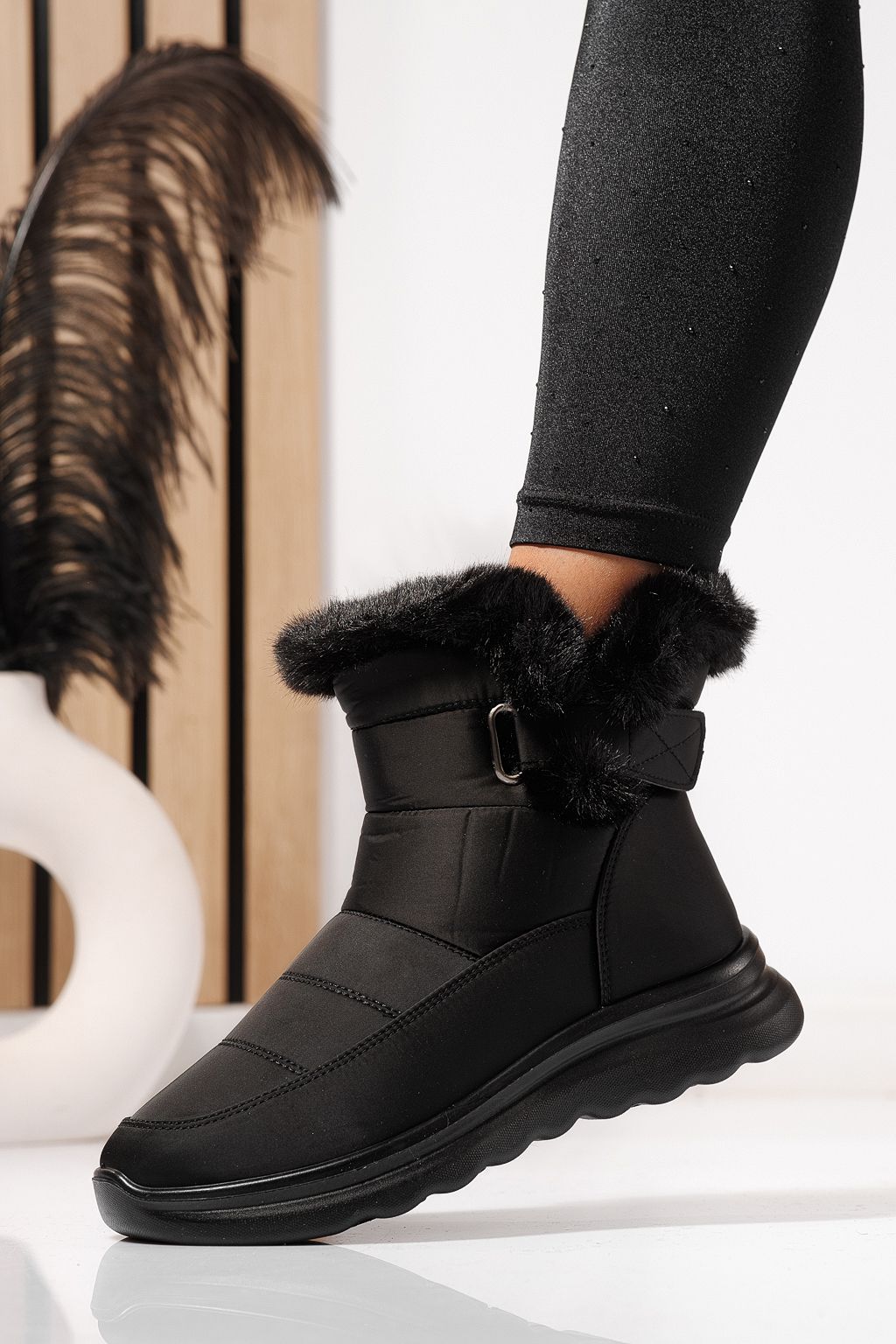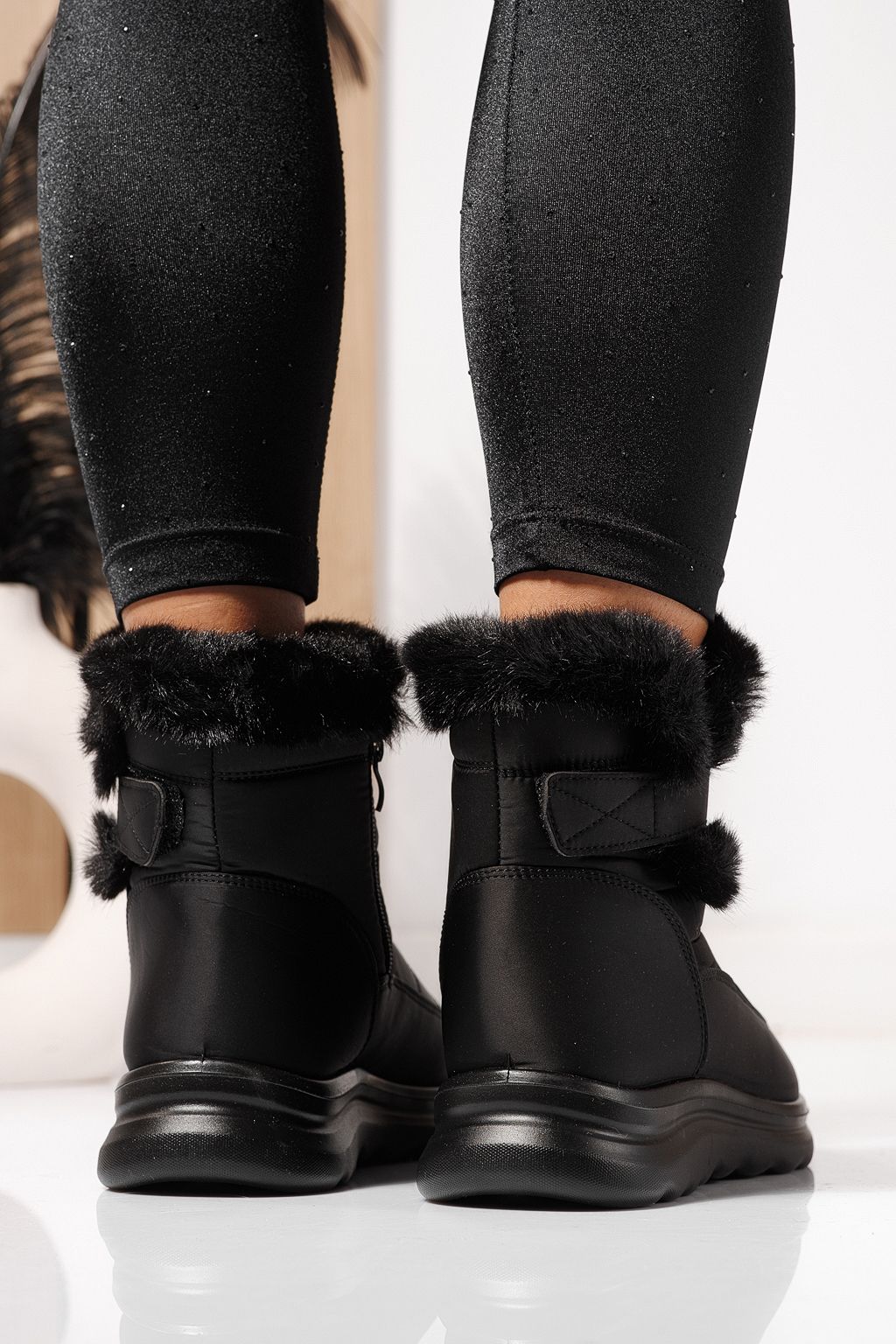 Főoldal Minden termék Női rövidszárú csizma Téli Csizma Női szőrmével bélelt csizma fekete susogós anyagból Amelia #23065