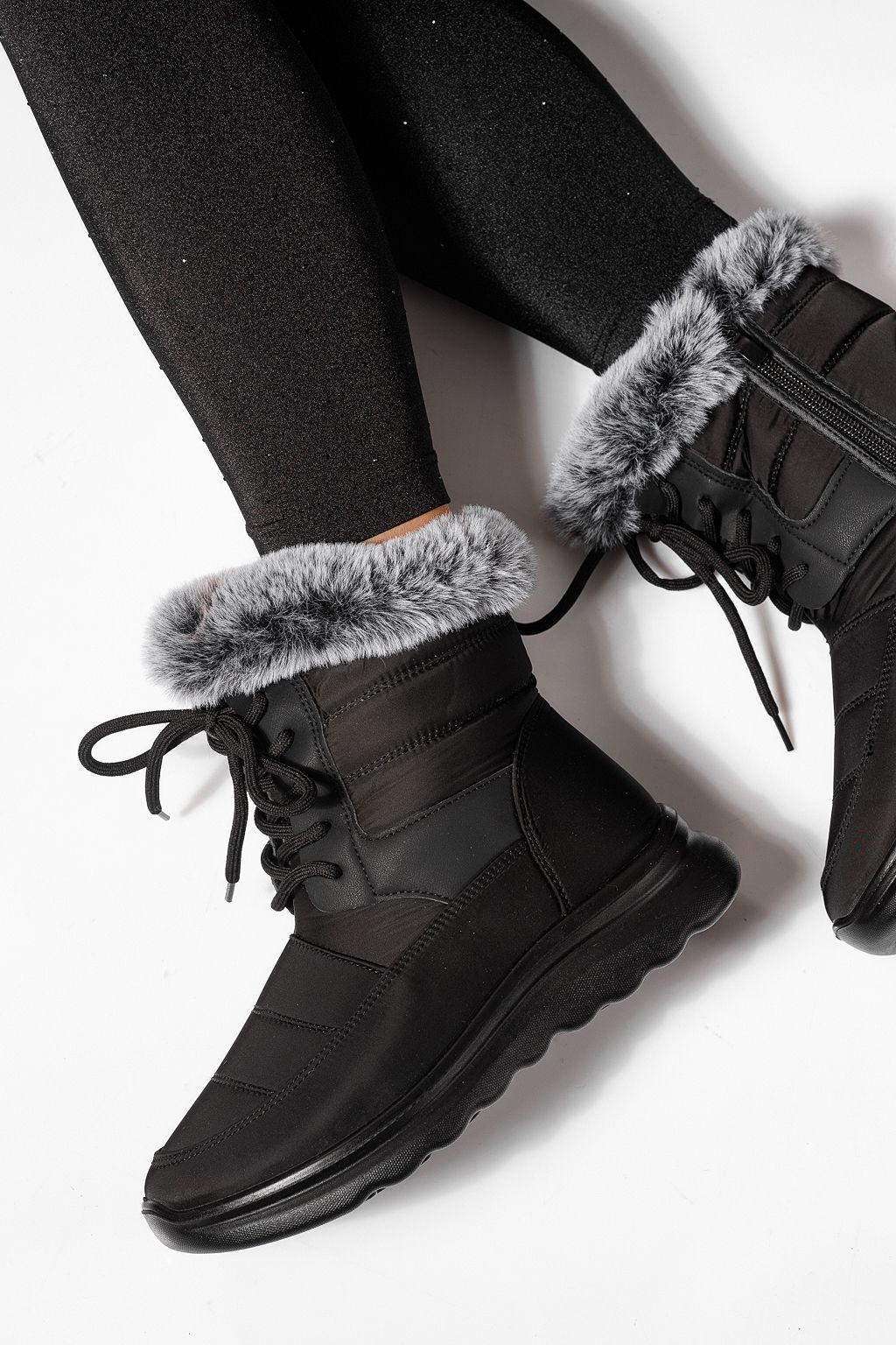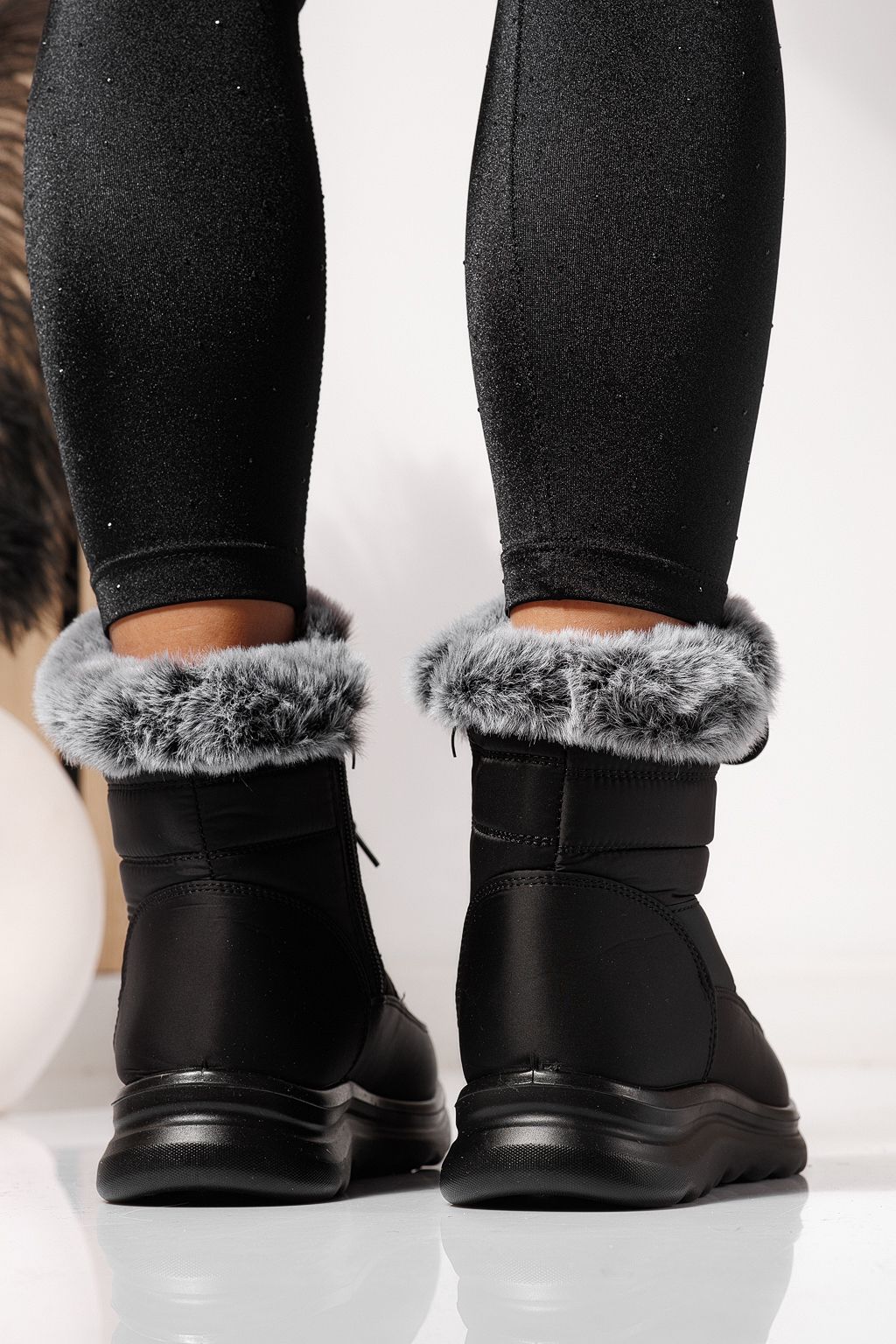 Főoldal Minden termék Női rövidszárú csizma Téli Csizma Női szőrmével bélelt csizma fekete susogós anyagból Alessia #23066