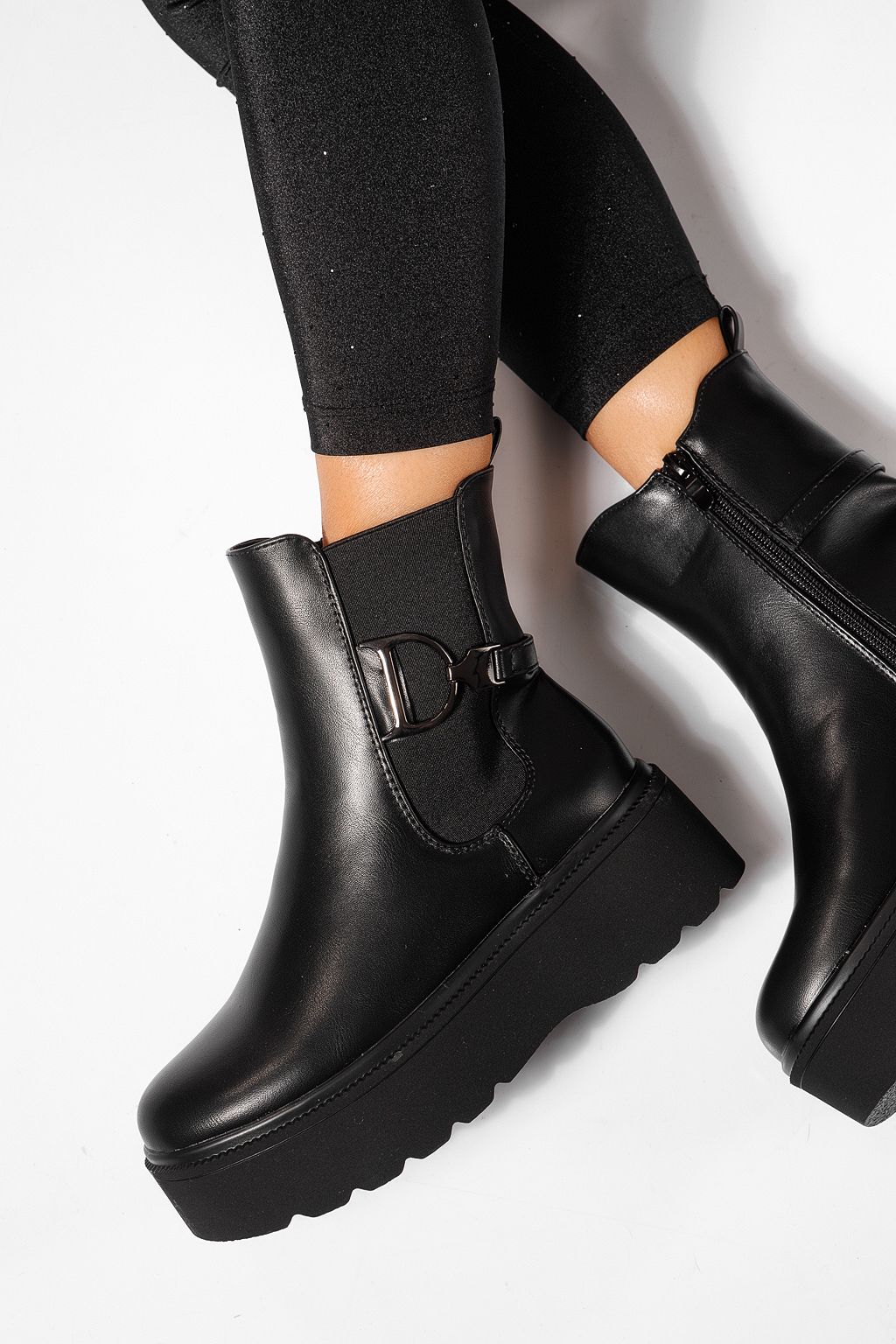 Főoldal Minden termék Női rövidszárú csizma Téli Csizma Női szőrmével bélelt csizma fekete öko bőrből készült Dalia #23074