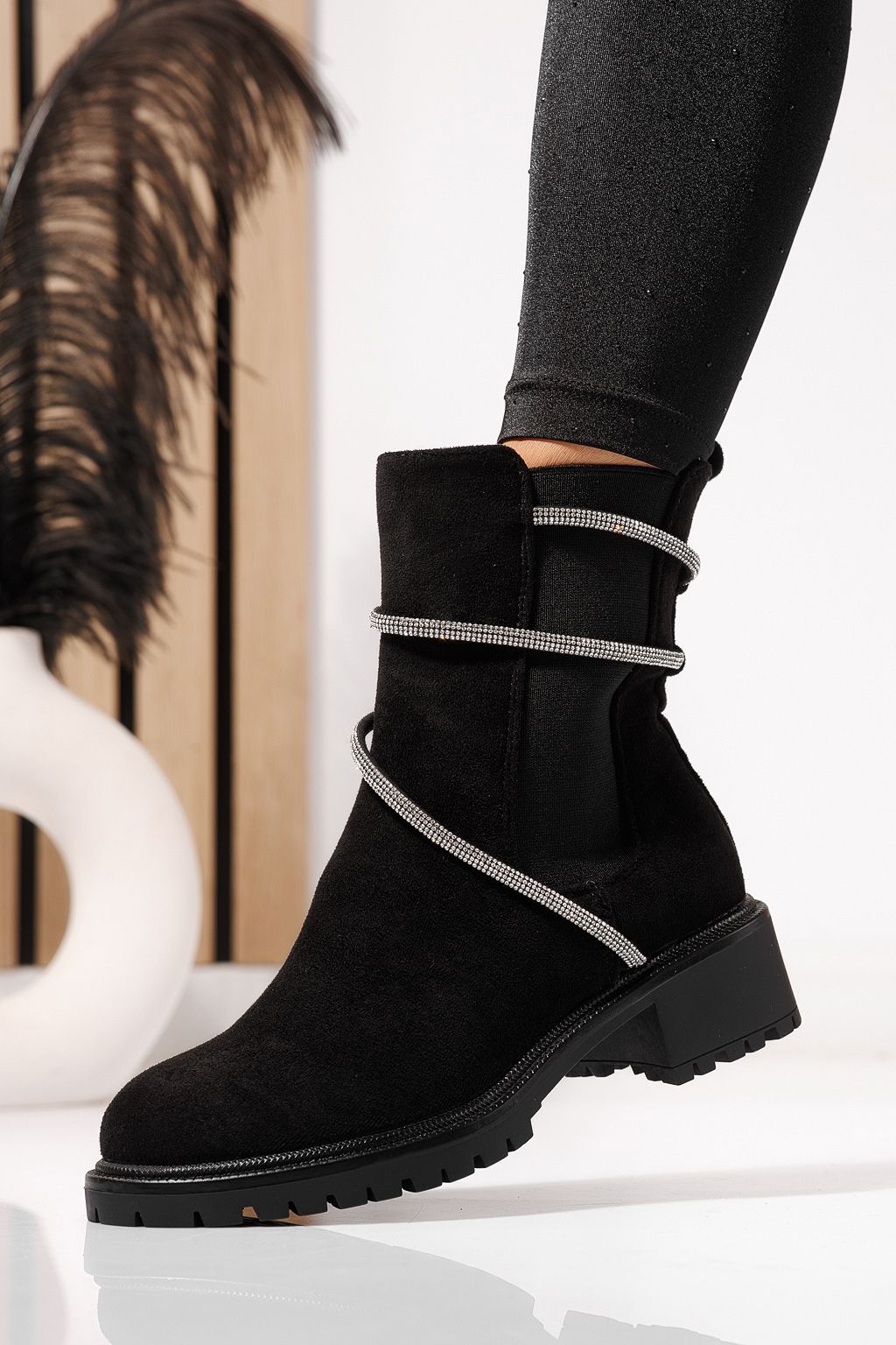 Női bélelt csizma fekete öko bőrből készült Eleanora #23078