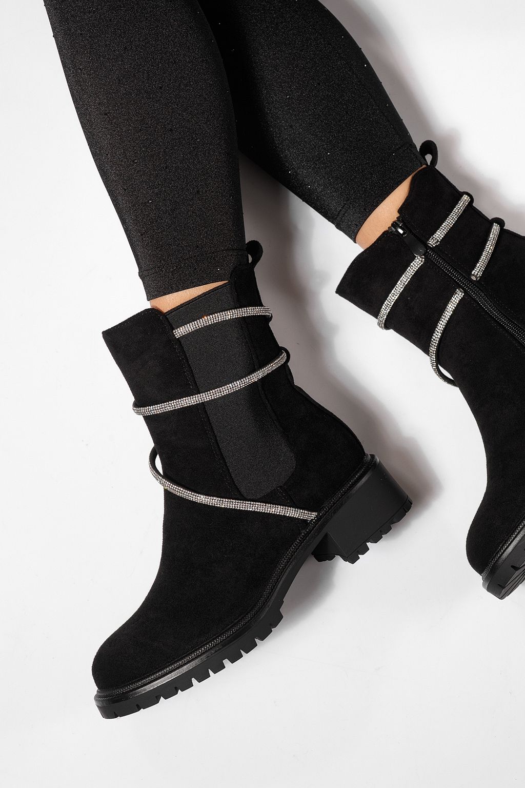 Főoldal Minden termék Női rövidszárú csizma Téli Csizma Női bélelt csizma fekete öko bőrből készült Eleanora #23078
