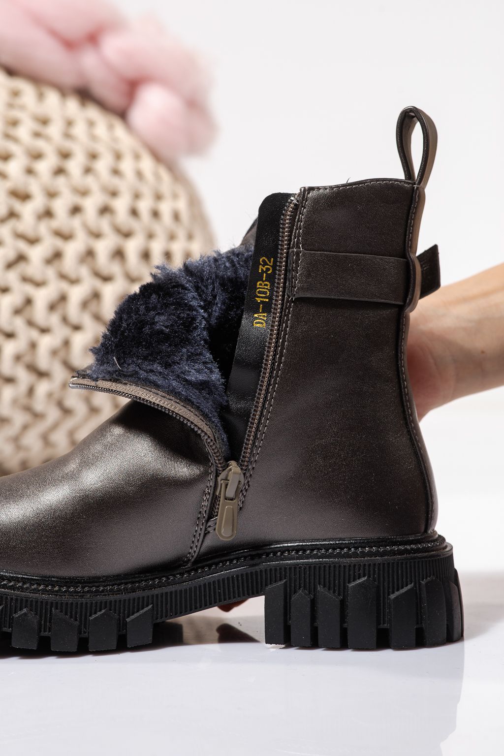 Szőrme csizma lányoknak szürke öko bőrből készült Sara #23105
