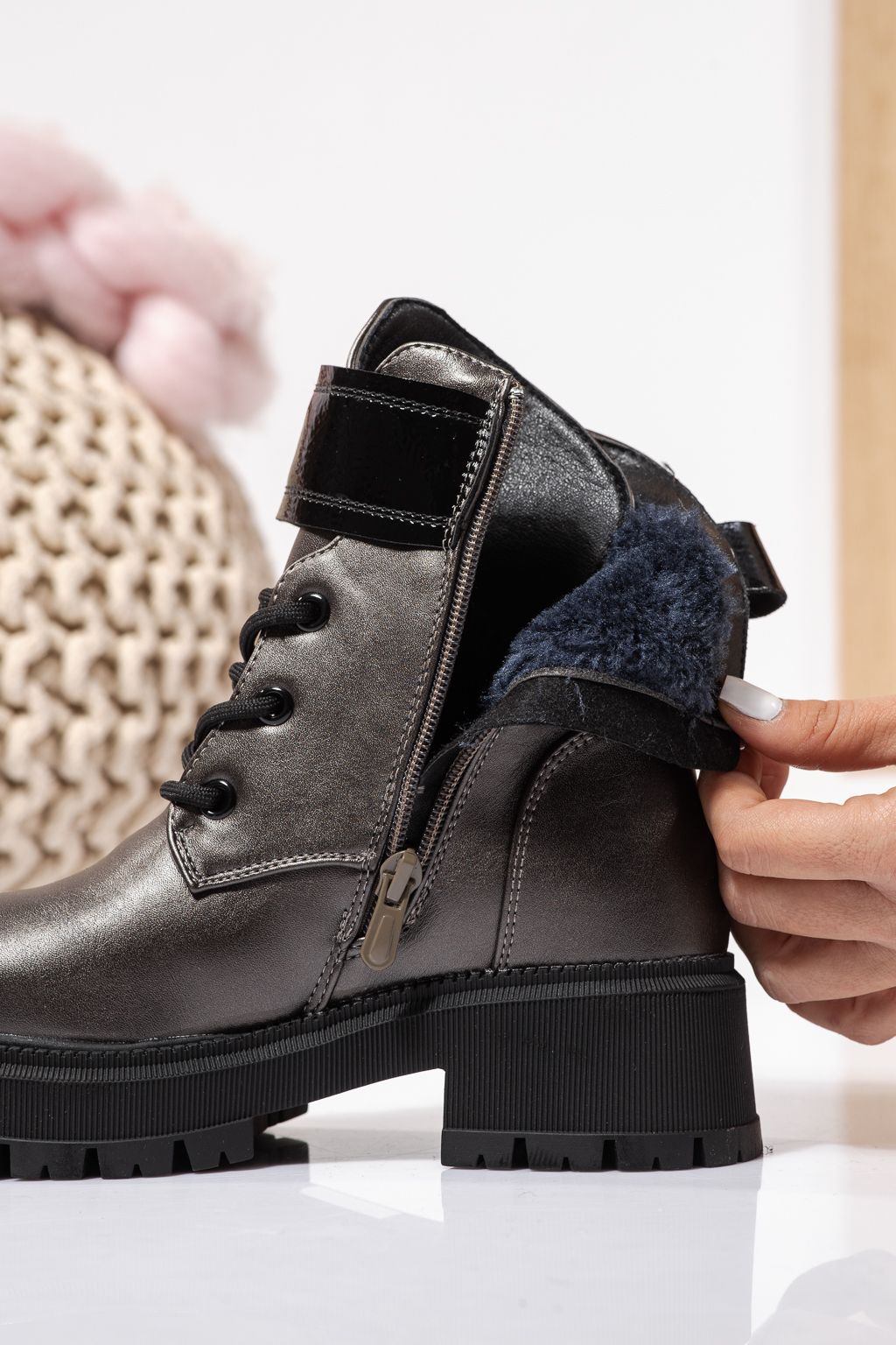 Szőrme csizma lányoknak szürke öko bőrből készült Alisa #23110