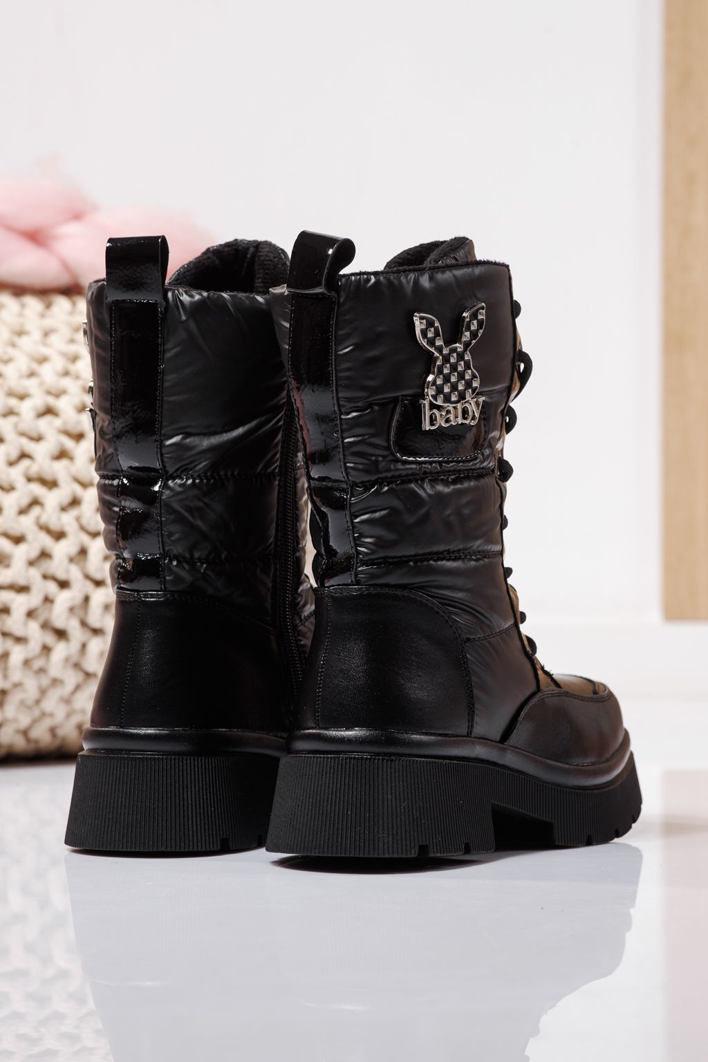 Szőrme csizma lányoknak fekete öko bőrből készült Dalia #23117
