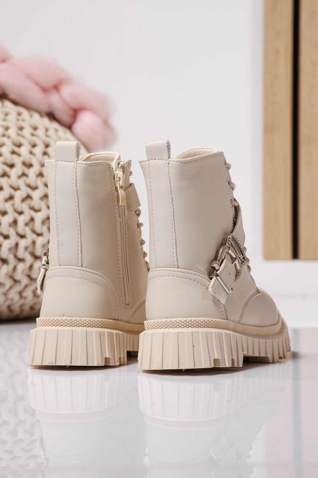 Szőrme csizma lányoknak bézs öko bőrből készült Edith #23123