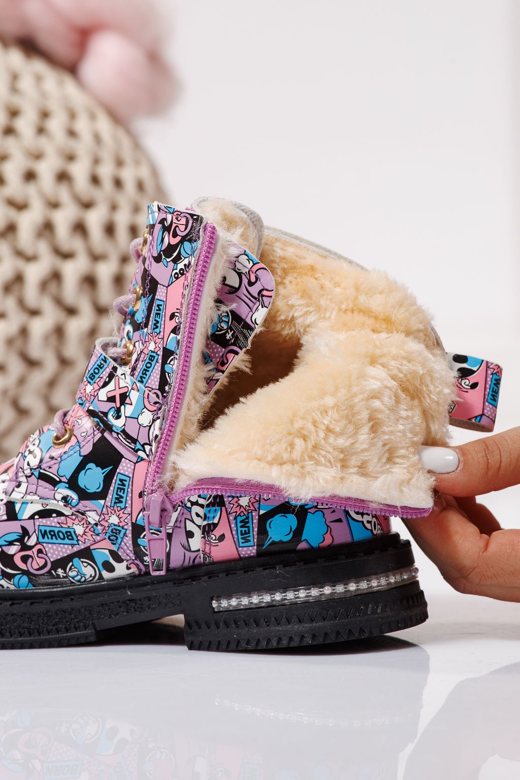 Szőrme csizma lányoknak mályvaszínű öko bőrből készült Eliza #23129