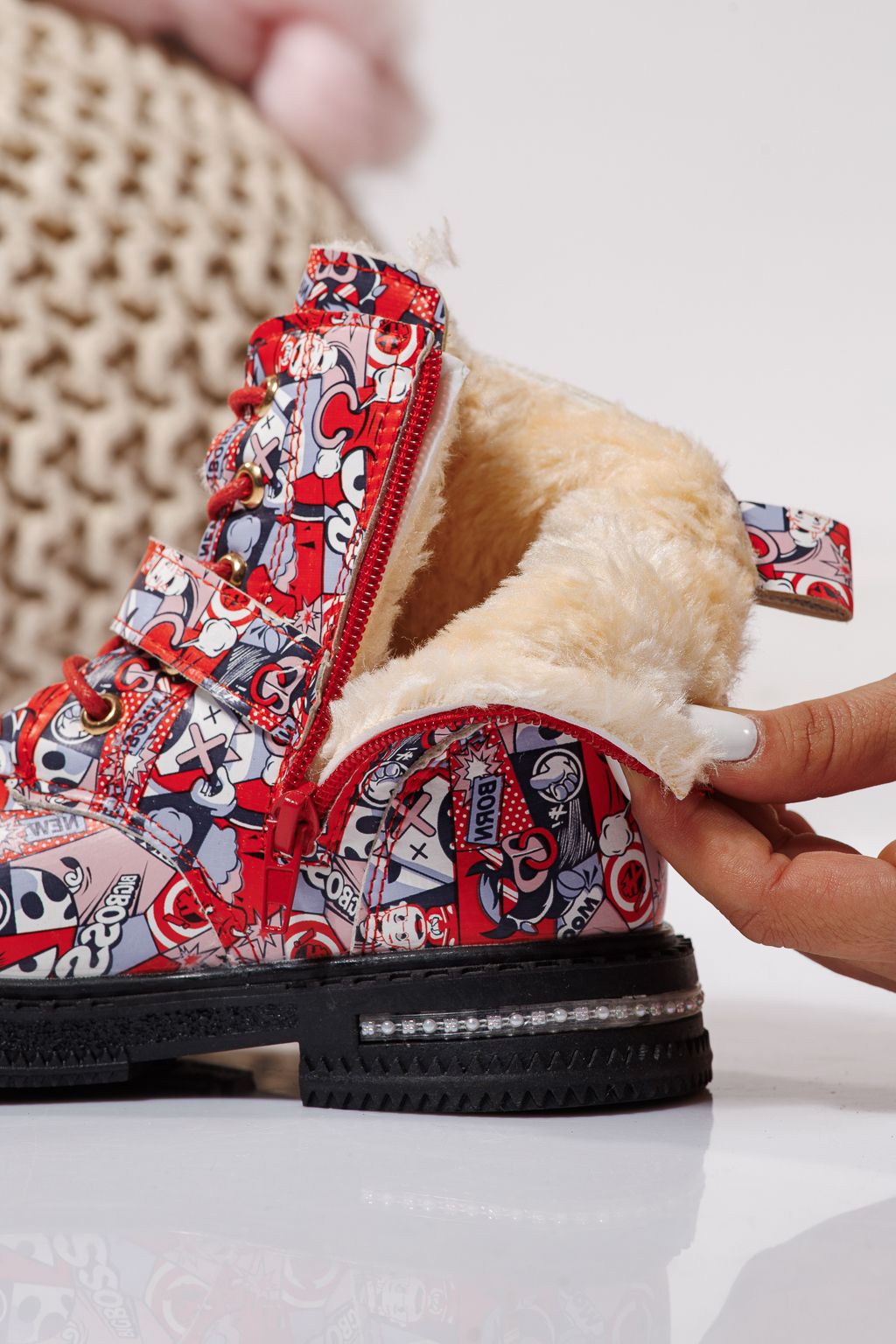 Szőrme csizma lányoknak Piros öko bőrből készült Eliza #23130