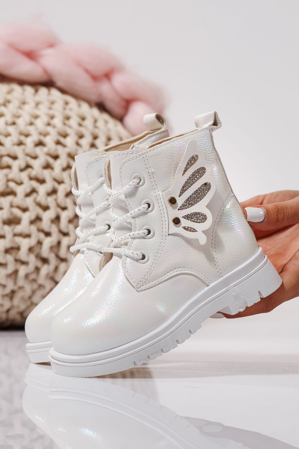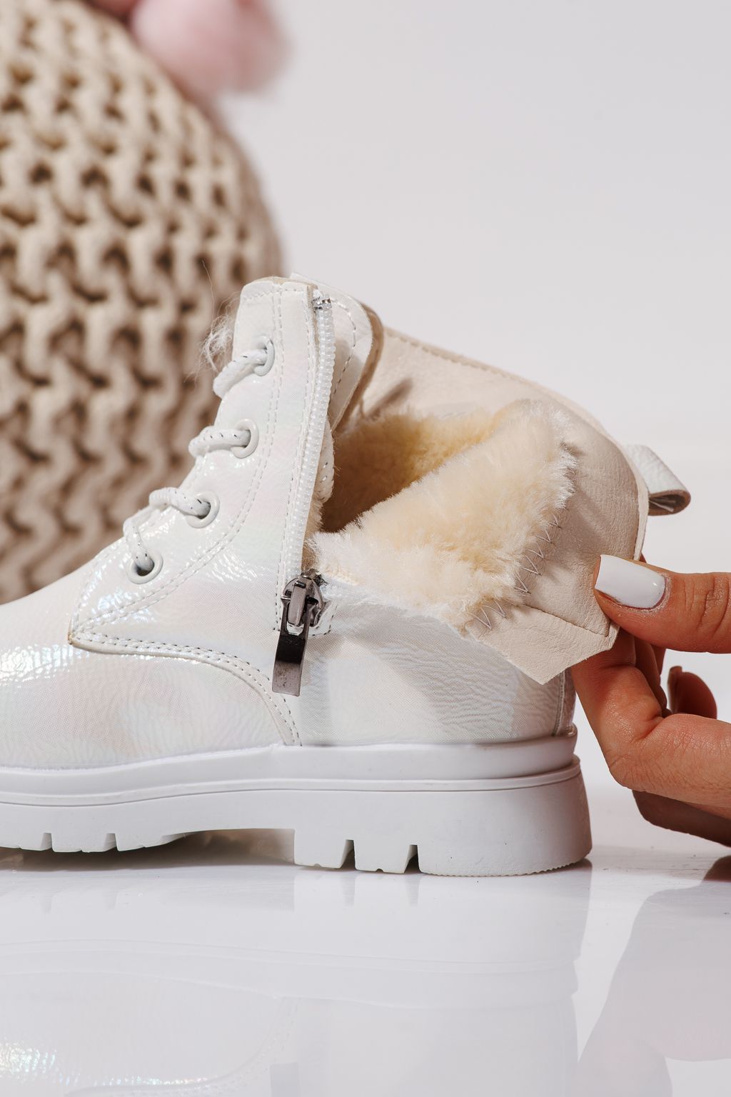 Szőrme csizma lányoknak fehér öko bőrből készült Melania #23144