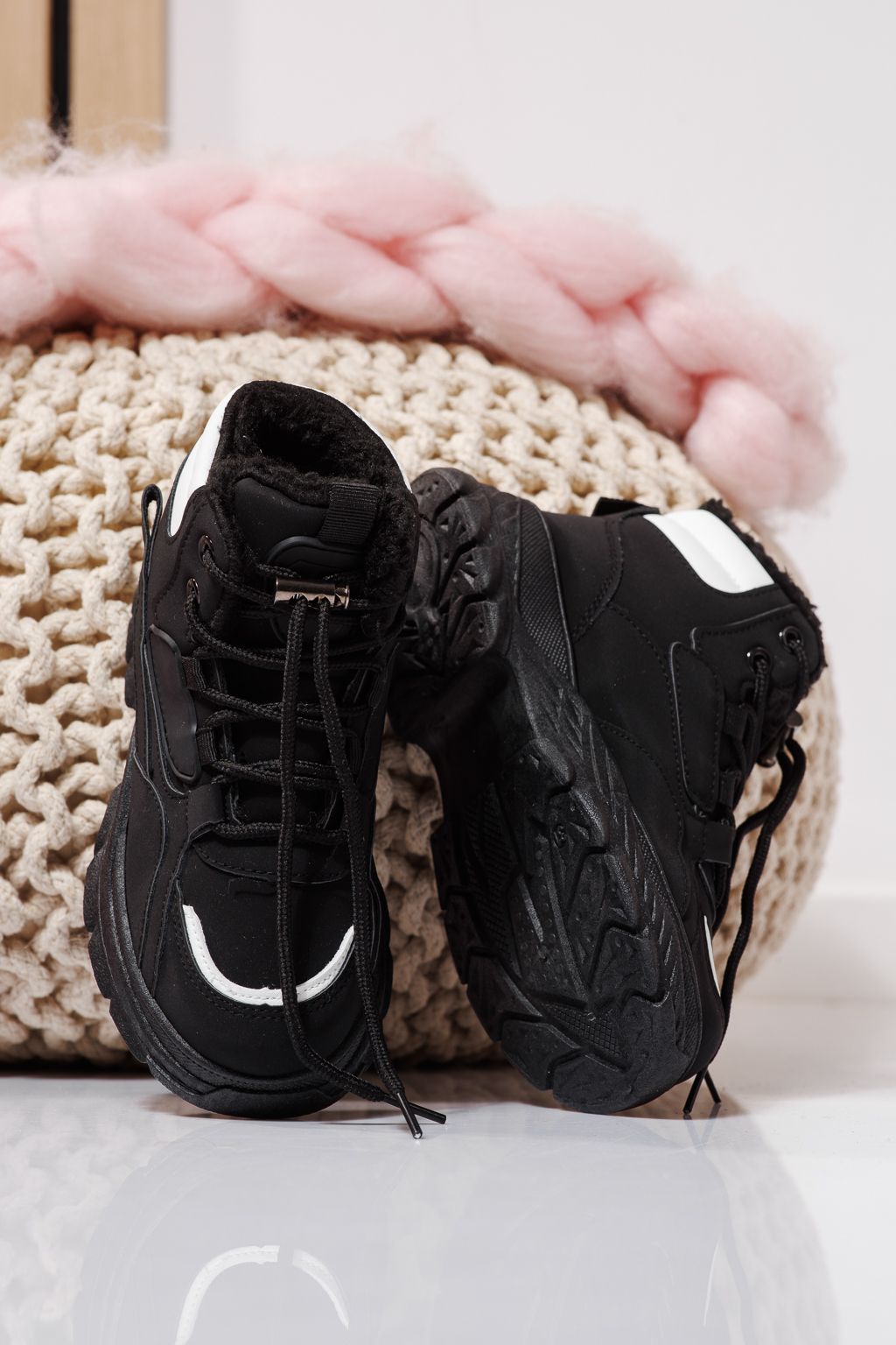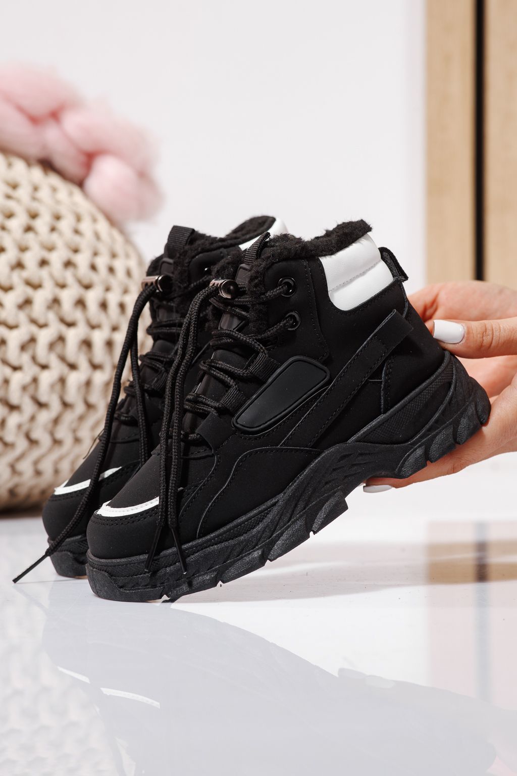 Gyermek fekete szőrme csizma ekológikus bőrből Aris #23170
