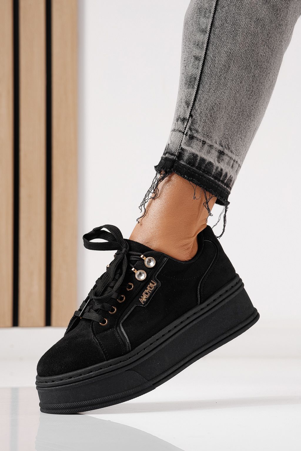 Női sportcipők fekete környezetbarát velúr bőrből készült Crina #24069