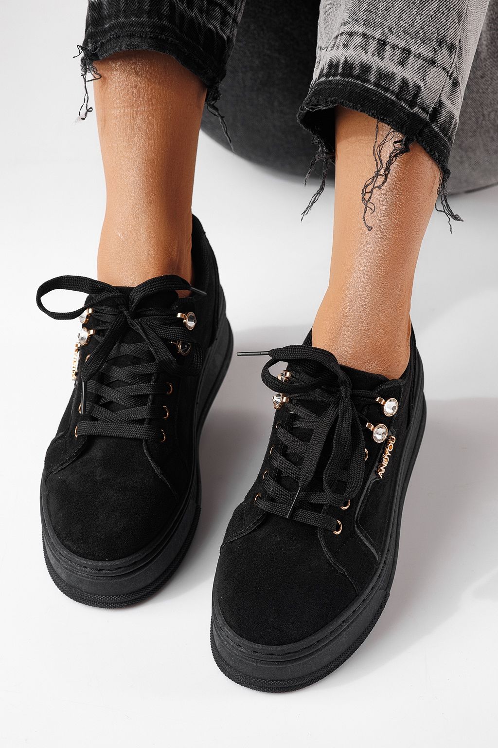 Főoldal Minden termék Női sportcipő Női sportcipők fekete környezetbarát velúr bőrből készült Crina #24069