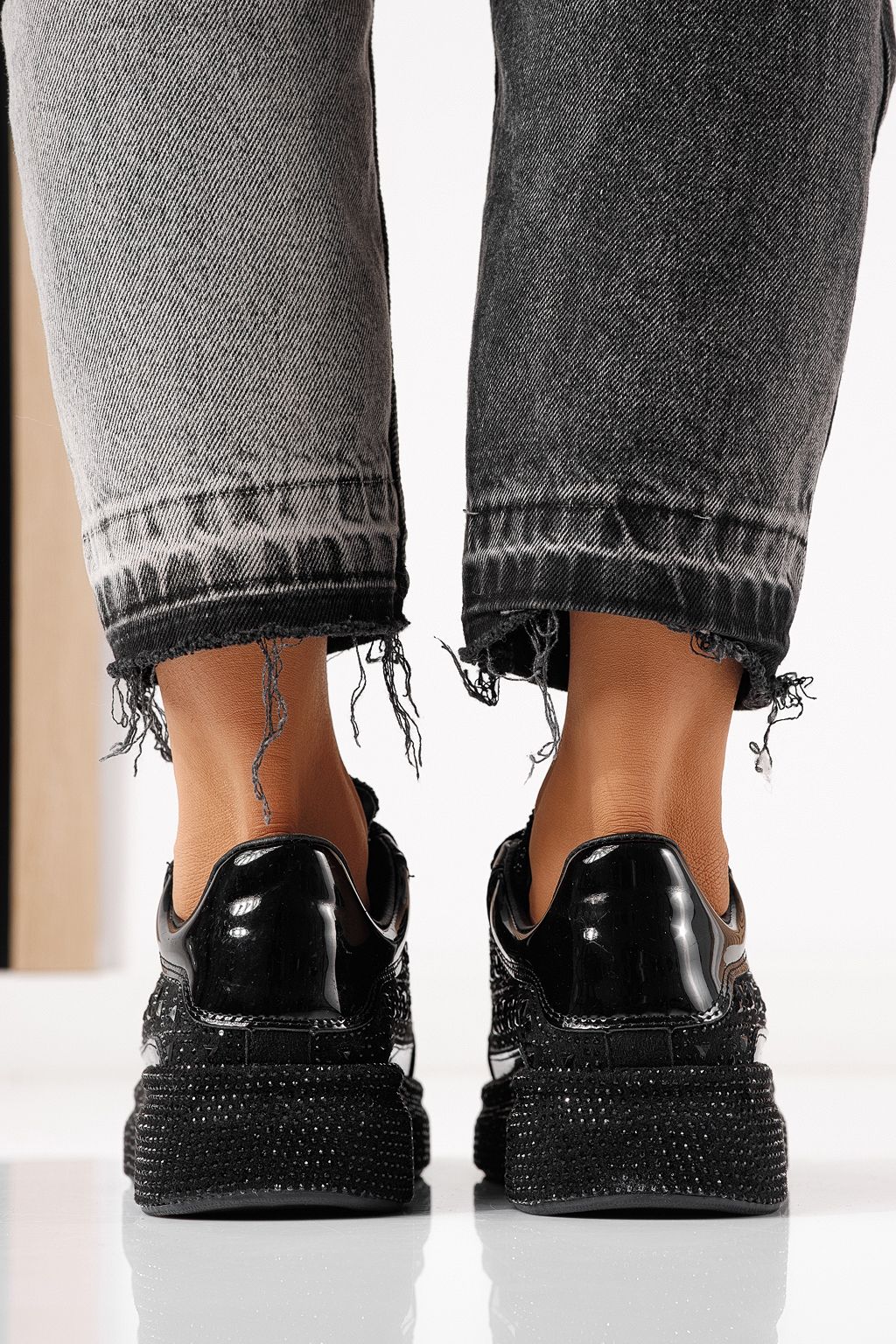 Női sportcipők fekete környezetbarát velúr bőrből készült Ilinca #24116