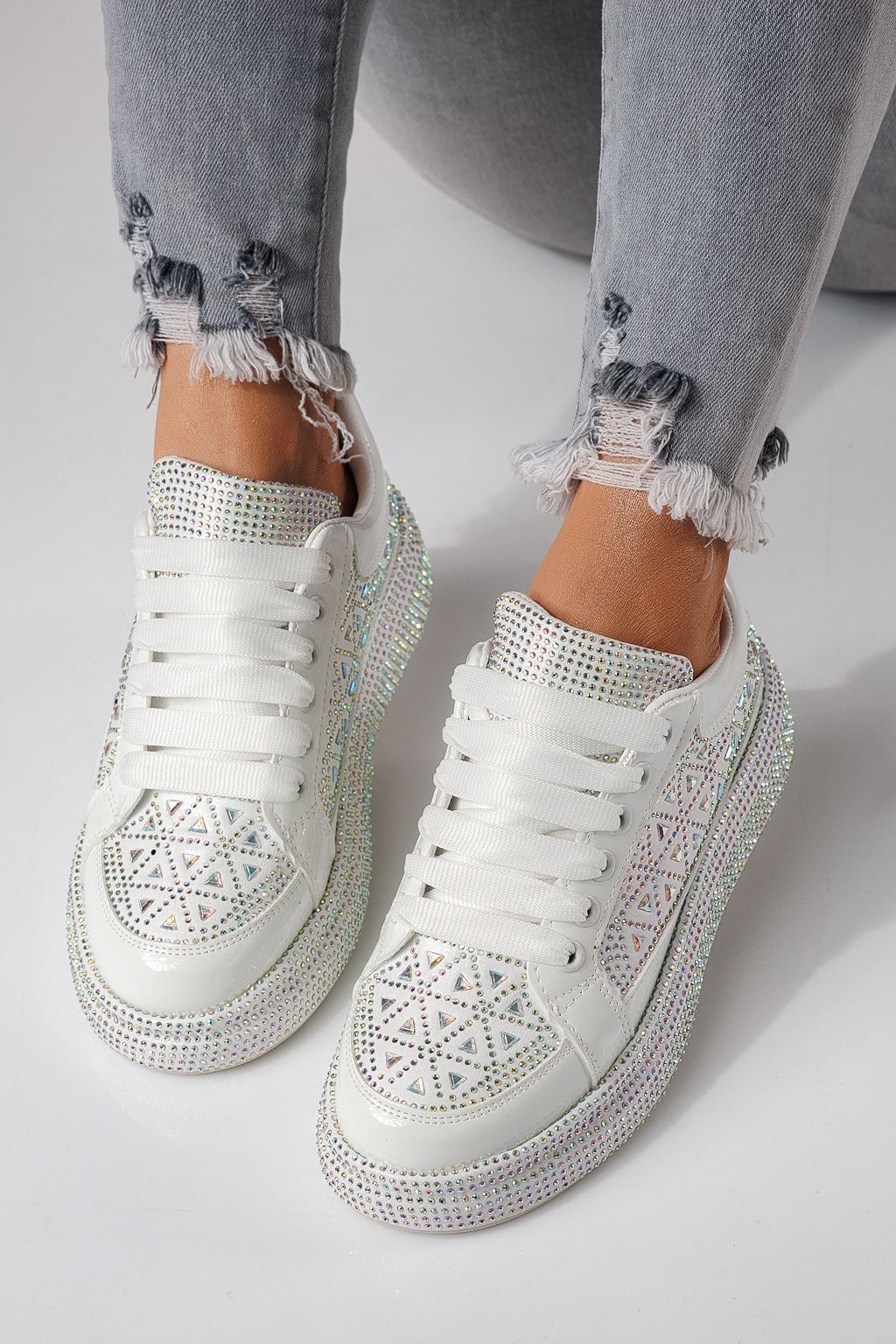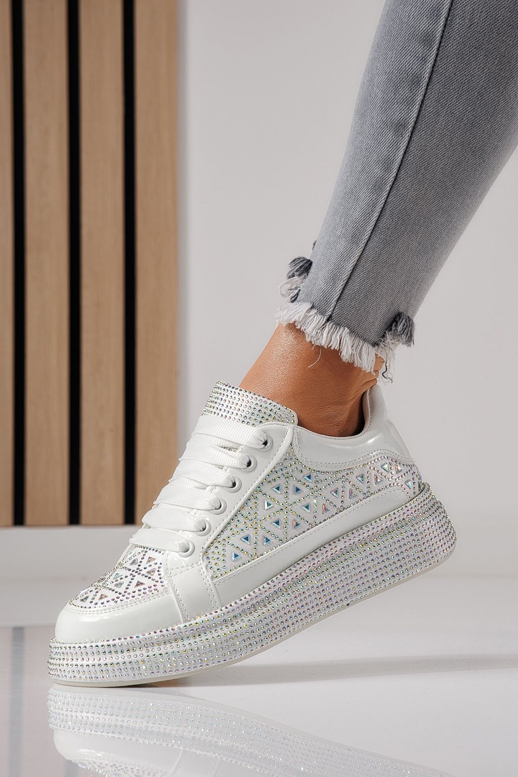 Női sportcipők fehér környezetbarát velúr bőrből készült Ilinca #24117