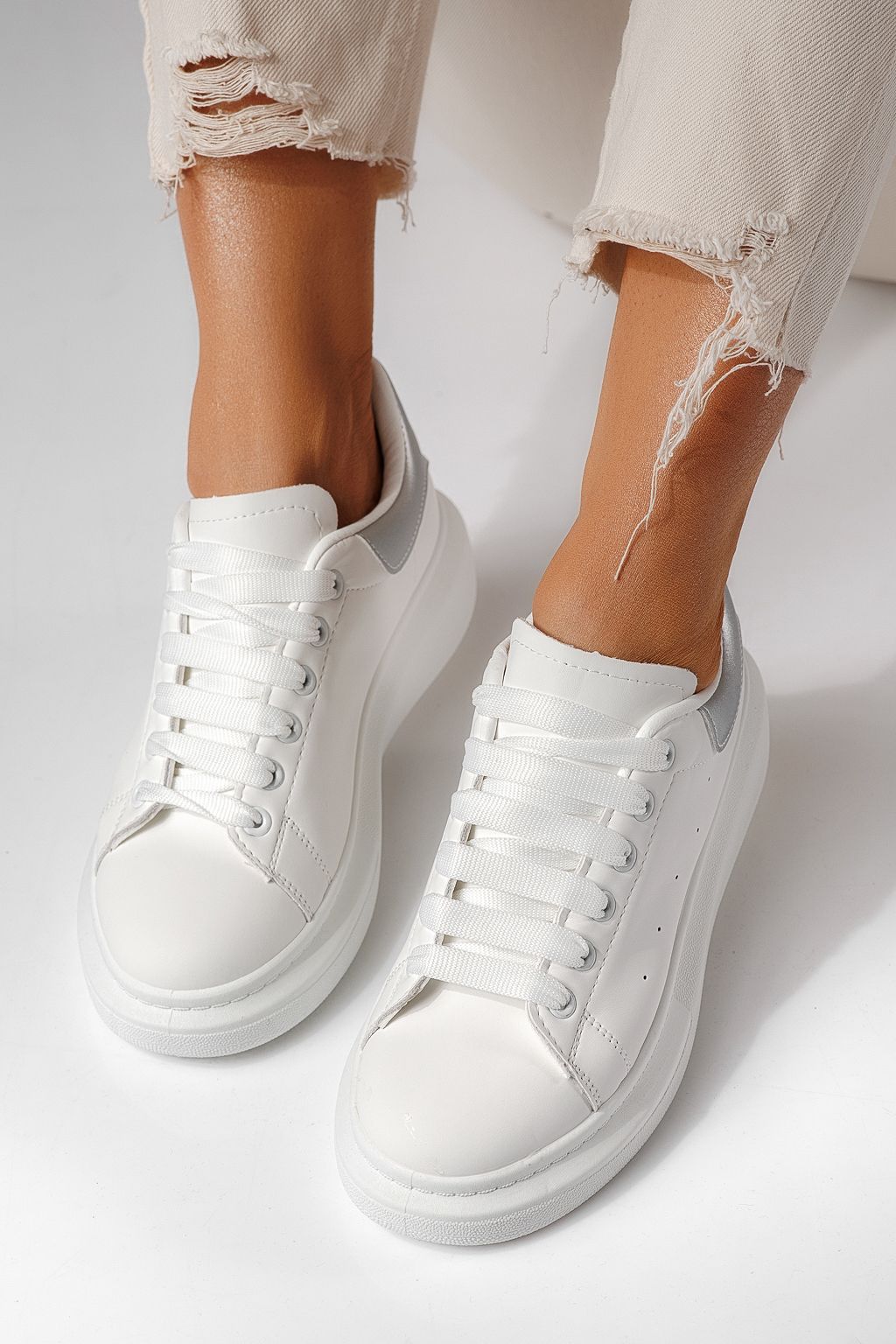 Női fehér sportcipő ekológikus bőrből Raya #24198