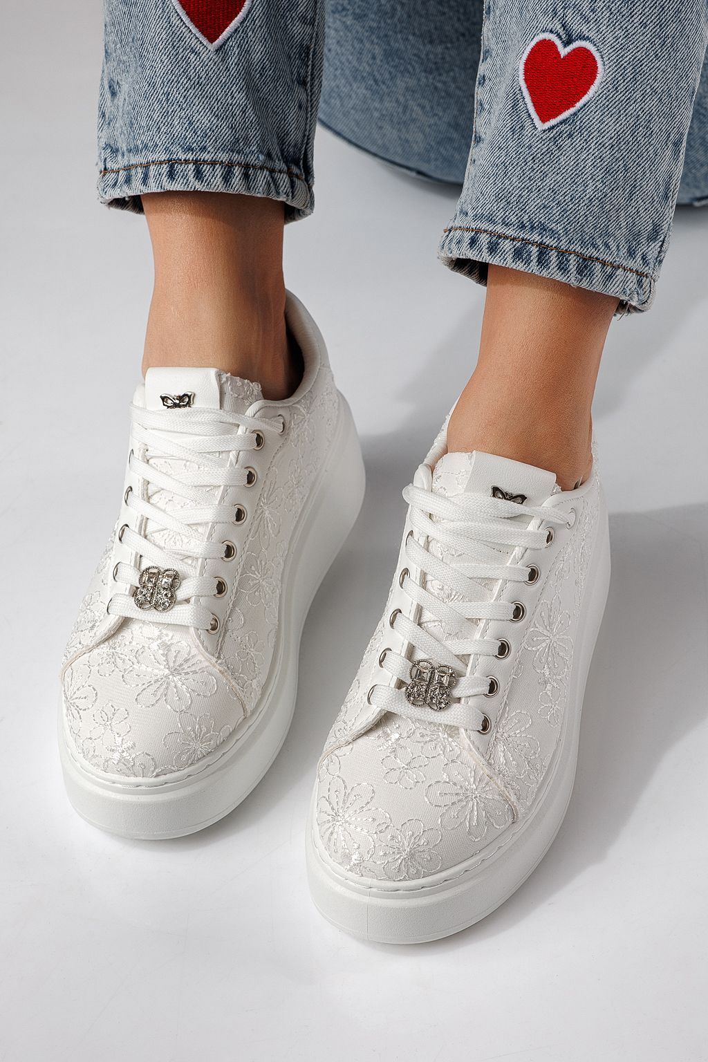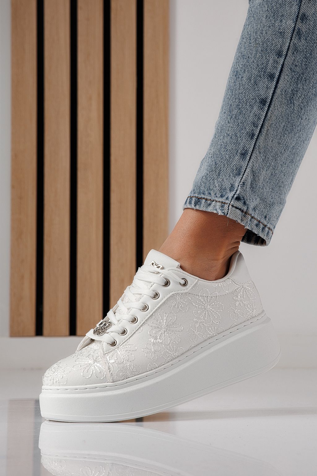 Adidasi dama albi din material textil Carla #24290