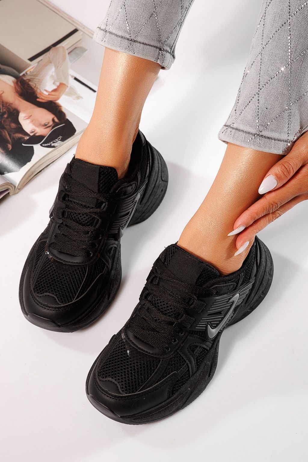 Főoldal Minden termék Női sportcipő Női sportcipő Női fekete tornacipő ökobőrből Amy #24602