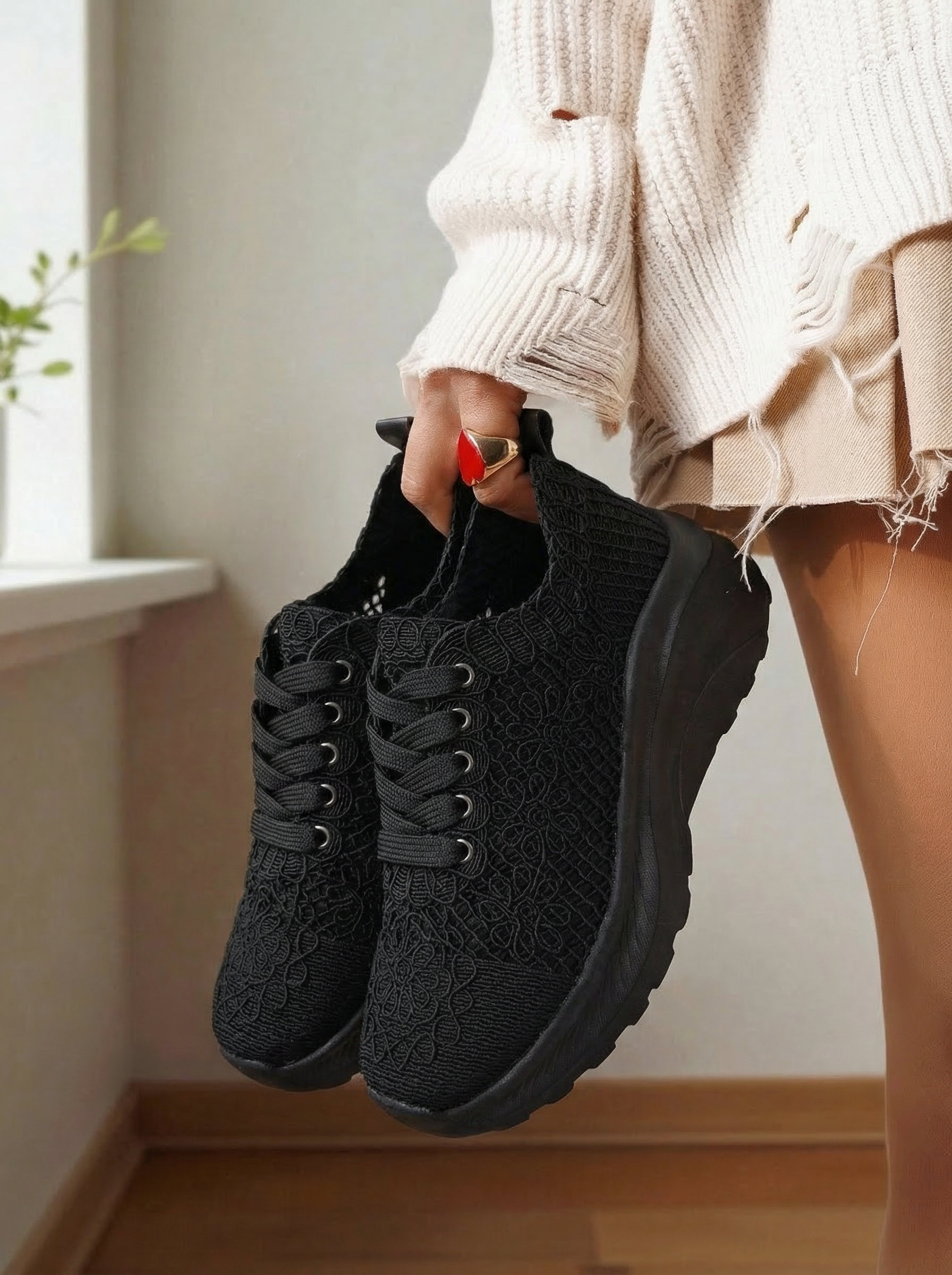 Női fekete textil tornacipő Yuri #24656